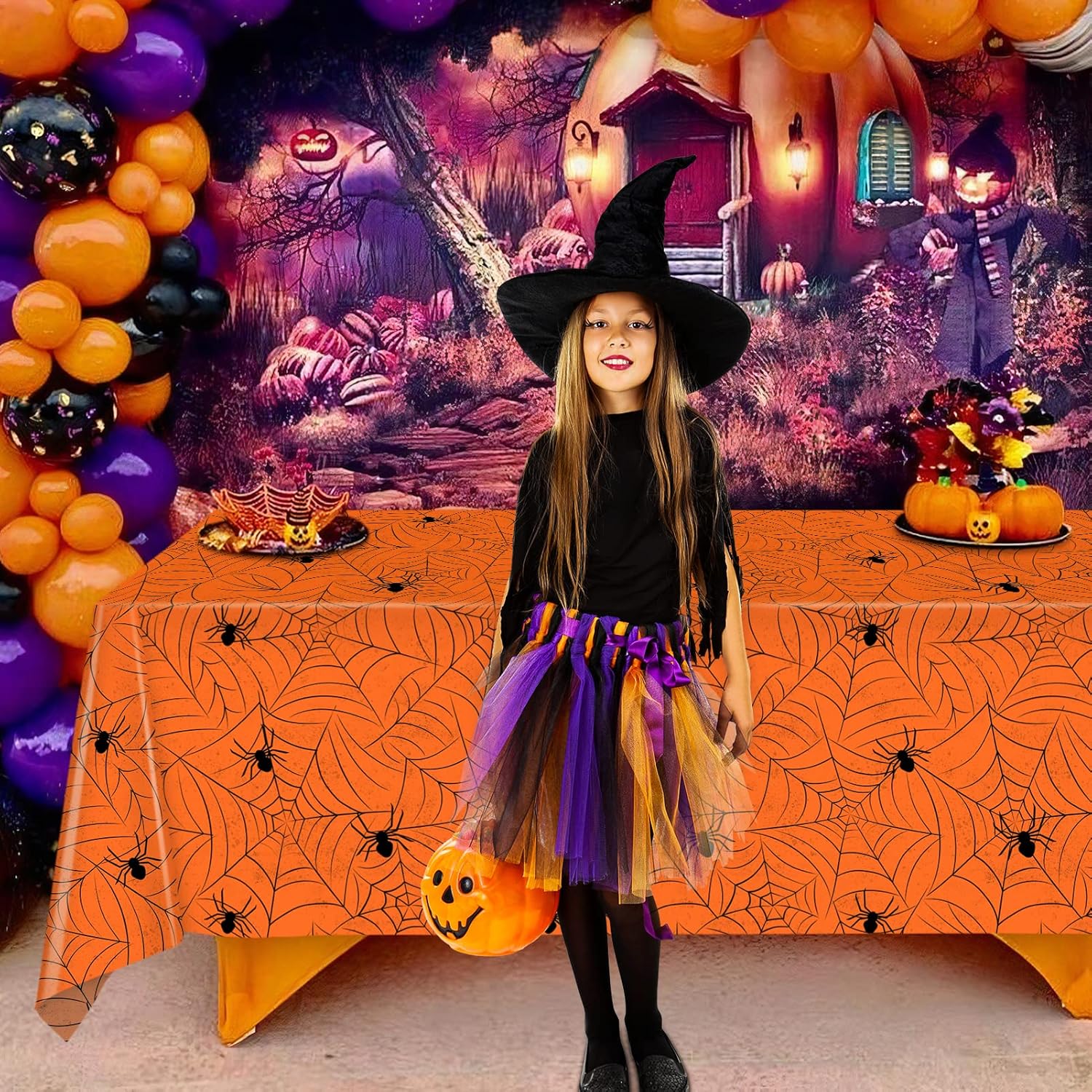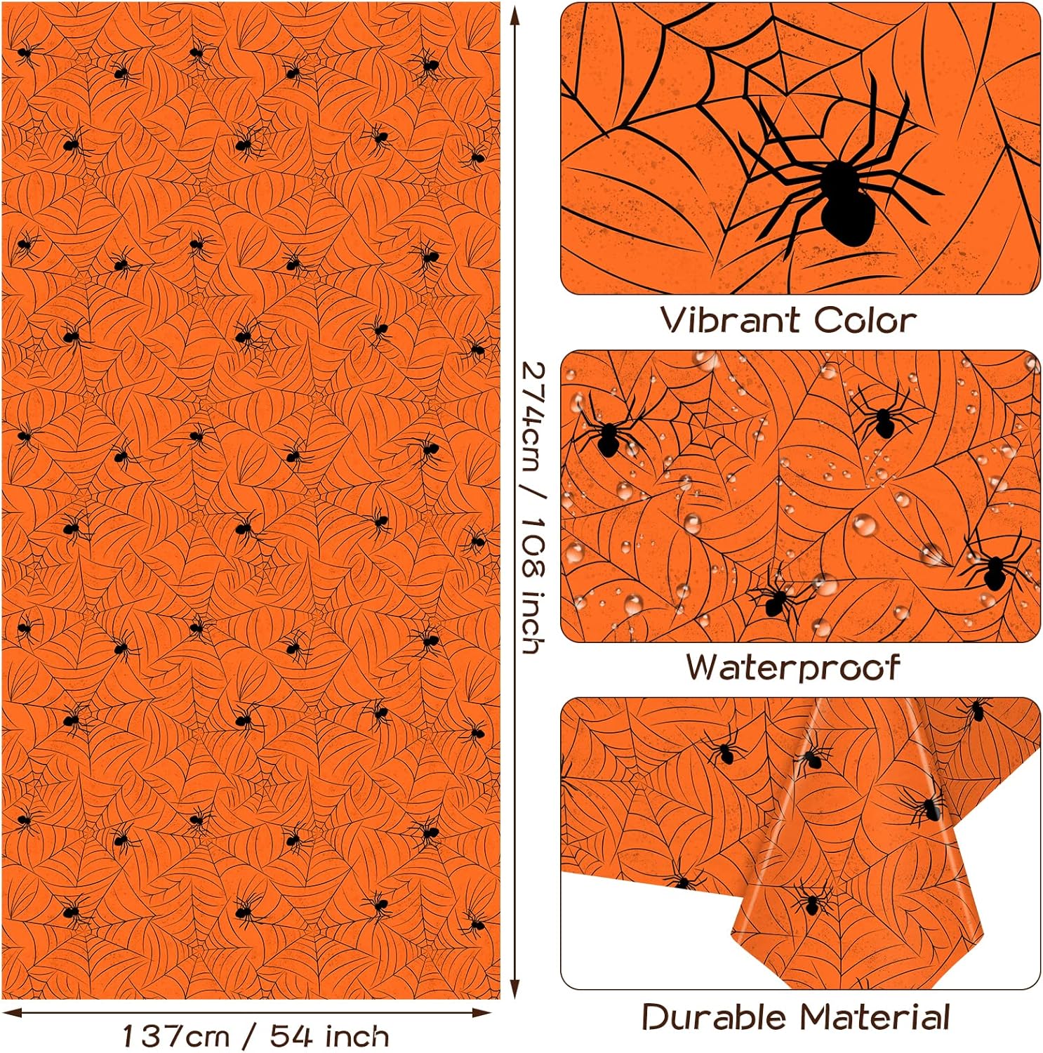 - Halloween Decoration Tablecloth - Package include 3 pieces plastic Halloween spiderweb tablecloths. Measures about 54" X 108". Serve your Halloween holiday themed parties hosting purpose.