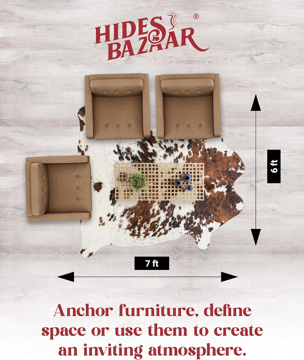 Light Tricolor Cowhide Rug Premium Cowhides Leather with Mixed White, Brown & Black Color Pattern - Natural Cowhide Rug for Office & Home Decor - Cow Hide Rugs 6x6-7 ft
