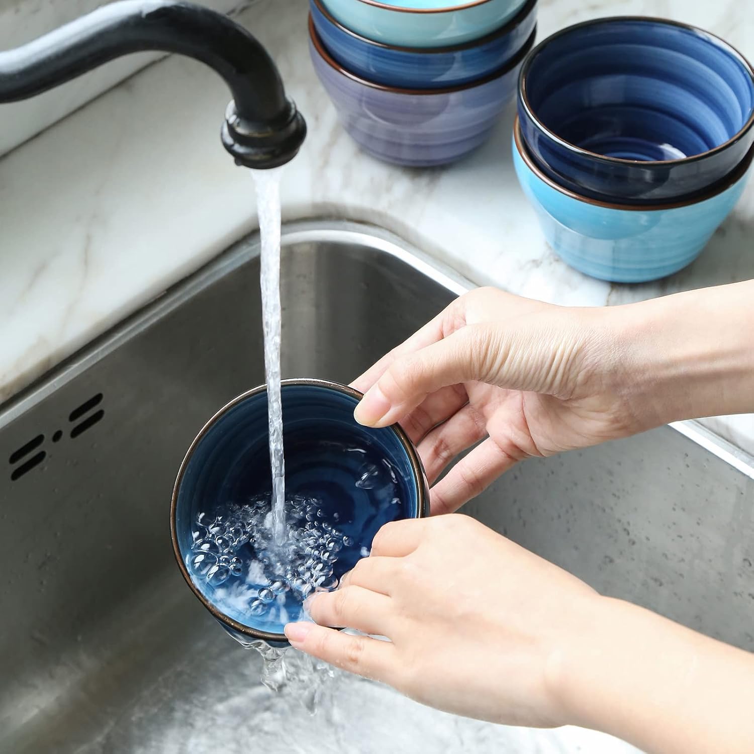 - SWIRL PATTERNS & BLACK SPOTS DESIGN - The exquisite hand-painted gradient patterns paired with black spots bring you a stylish and concise feeling. Dress up your meals and snacks with these unique, colorful bowls. They will brighten up your table at mealtime and add a touch of brilliant color to life.