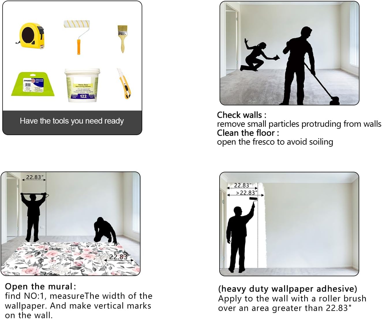 - This mural is It's not Peel and Stick . Additional Purchase required ( thick wallpaper adhesive ) please Check if is the product you need . thanks.