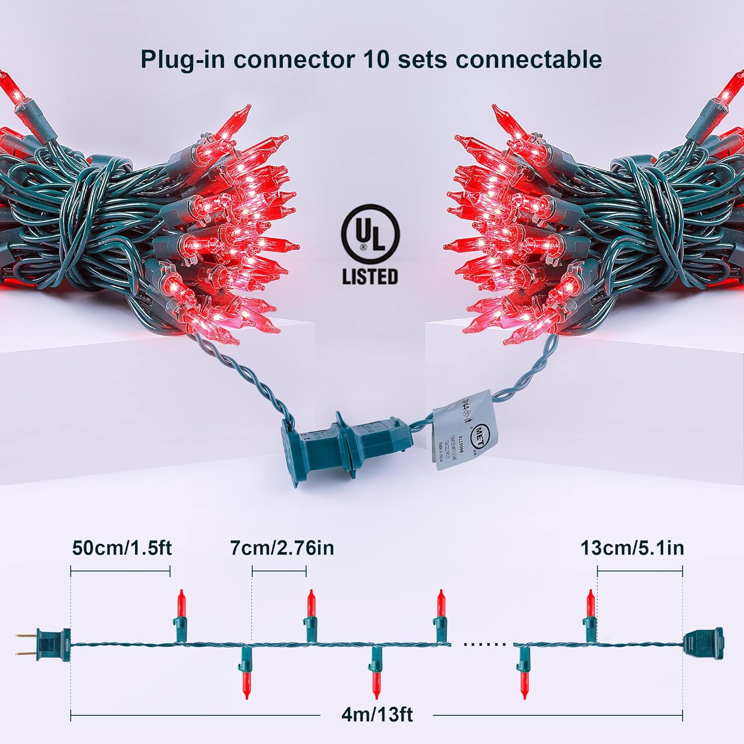 - 🎀Connectable Christmas Lights: Red string lights can be End-to-End connected. Up to 10 sets,lighting range can be extended to 130ft. With this convenient function,you can do the DIY decoration on any occasions: shopping street, Christmas, music festival, birthday party, graduation party, garden, deck, bedroom.