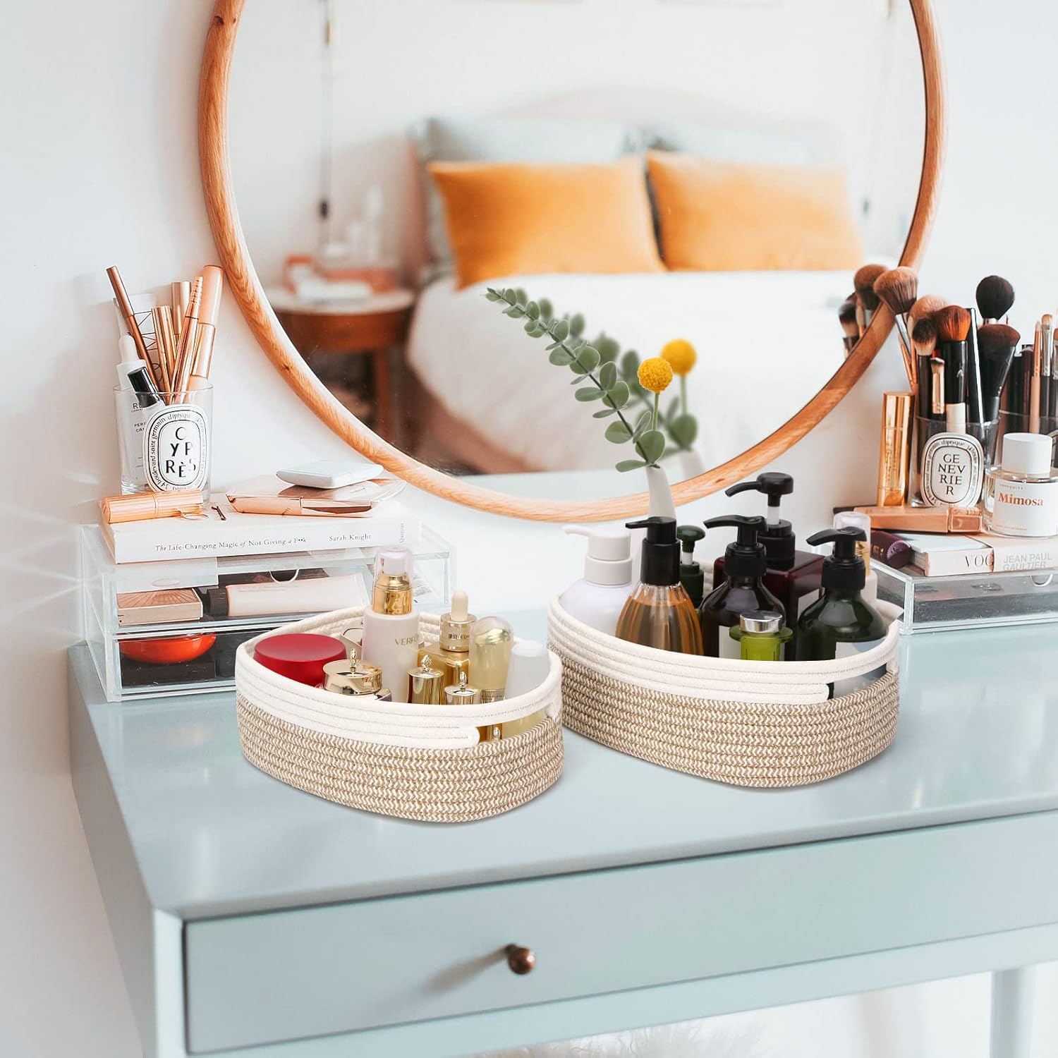 - High Capacity: This basket set comes with 2 practical small baskets to provide more storage space. Find the perfect place for all your messy supplies. This set of 7 fabric rope baskets can be used to organize blankets, towels, books, pet toys. The included small basket is perfect for storing keys, jewelry and accessories. Size: 11.8"x8.7"x4.3", 11"x7.9"x3.9", 10.2"x7.1"x3.5", 9.1"x6.3"x3.1", 7.9"x5.5"x2.8", 6.7"x4.7"2.4", 5.5"x3.9"x2.1"