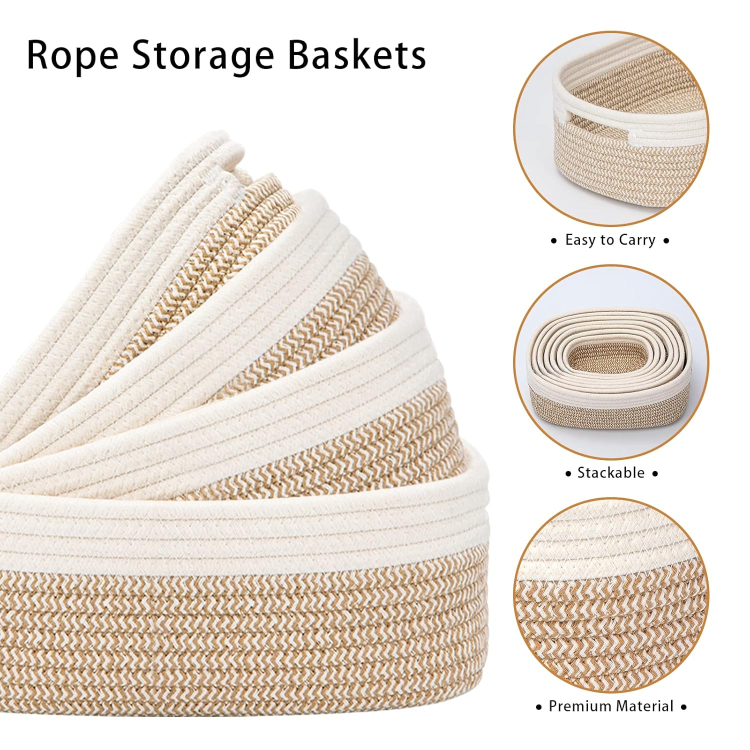 7 Piece Cotton Rope Woven Basket Set - Small Basket for Baby Nursery, Pets, Montessori, Dog & Cat Toy Boxes, Bathroom Organization Bins (White/Brown)