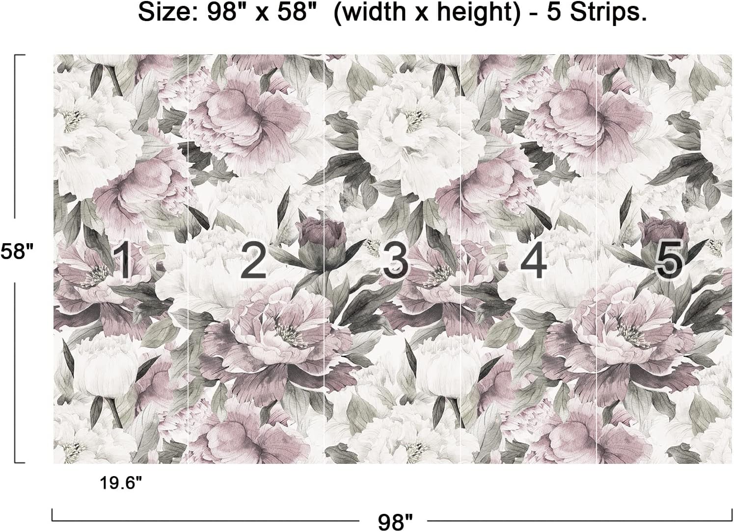 Cliouar-Vintage Purple Pink Rose Bedroom Living Room Decor Wallpaper Mural Bedroom Living Room Decor Peel and Stick 98" x 58"