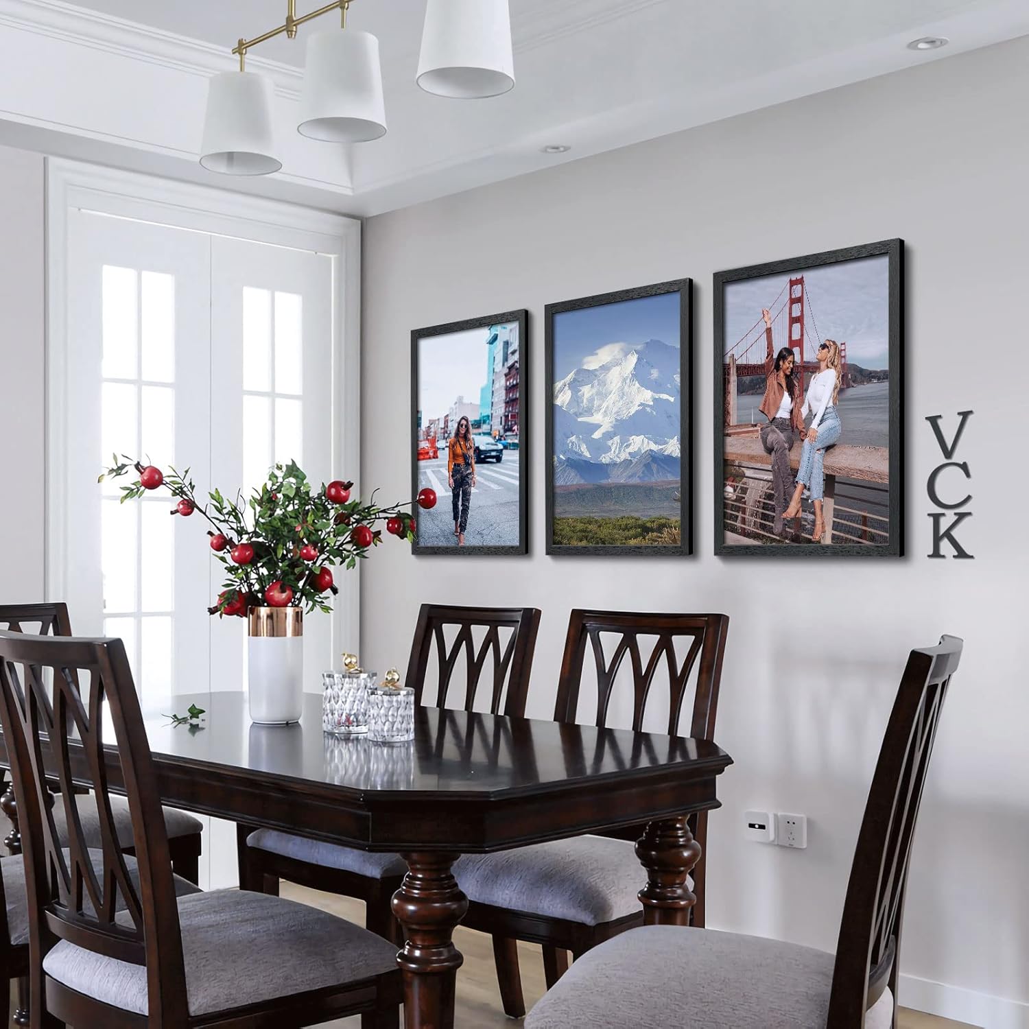 VCK 20x28 Poster Frame Set of 3 - Black, Textured Exclusive Solid Wood Picture Frames, Wall Hanging