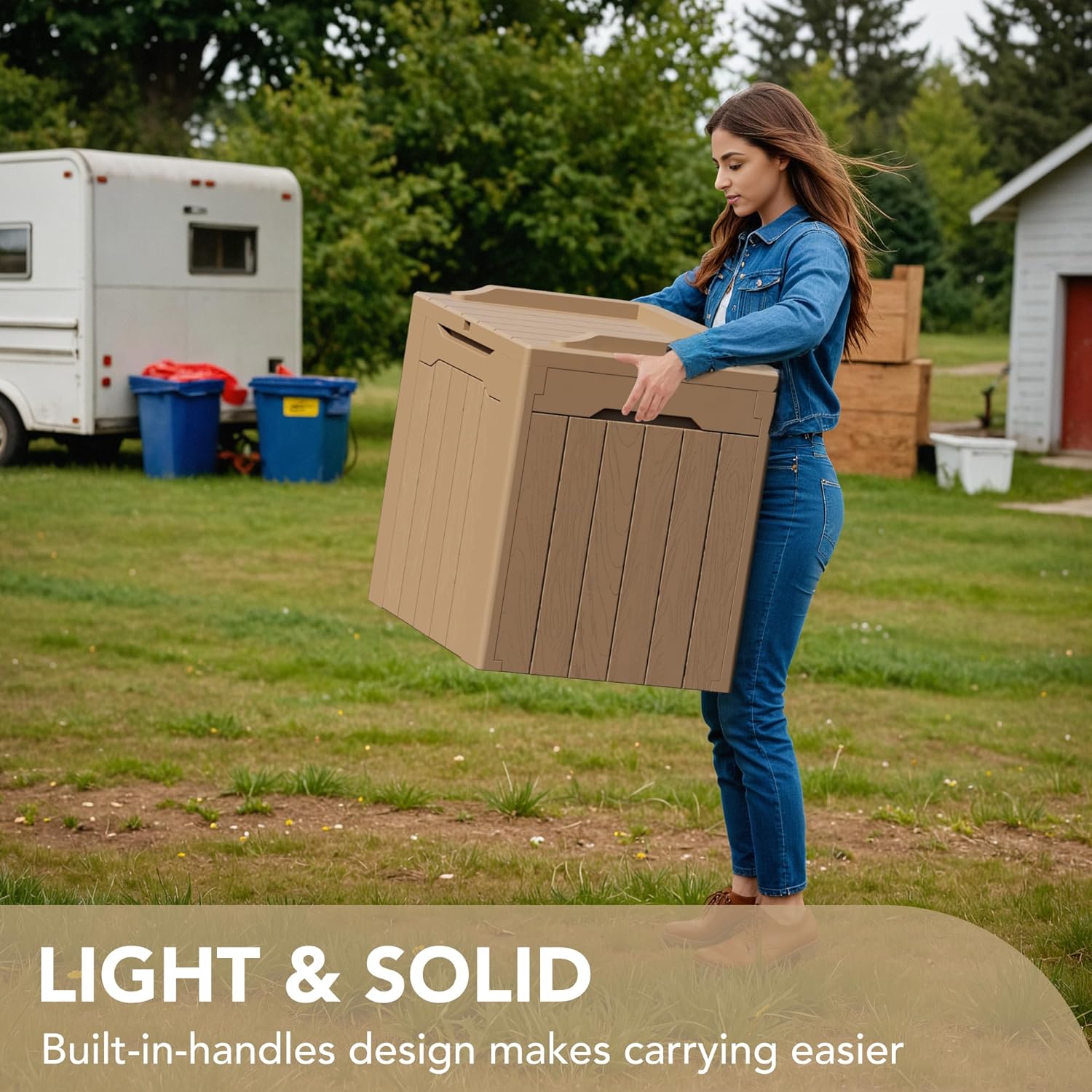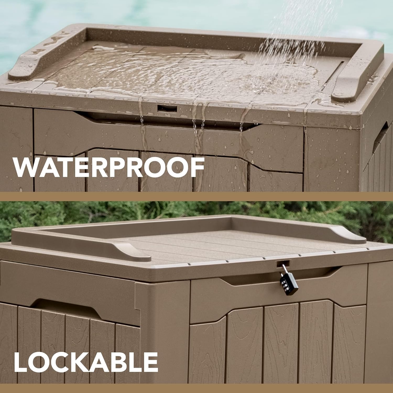- Light & Solid: Made of a high density resin material, it is stable, waterproof and UV resistant. The net weight of this deck box is only 8.8 pounds