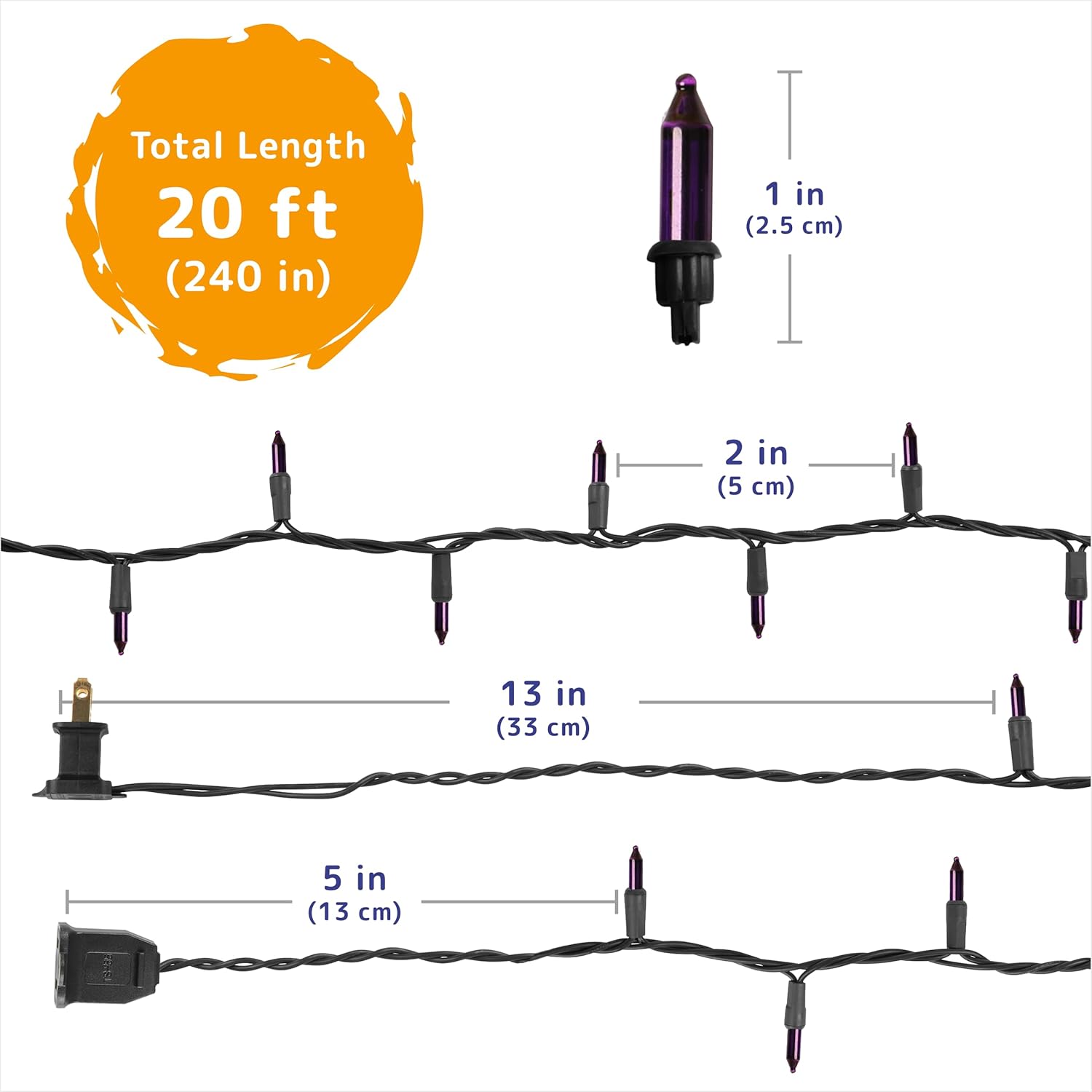 - Expandable Multi-Set Design: Link up to five strands of purple christmas lights end-to-end; 2-inch bulb spacing provides even coverage for larger spaces like porches, gardens, and party venues