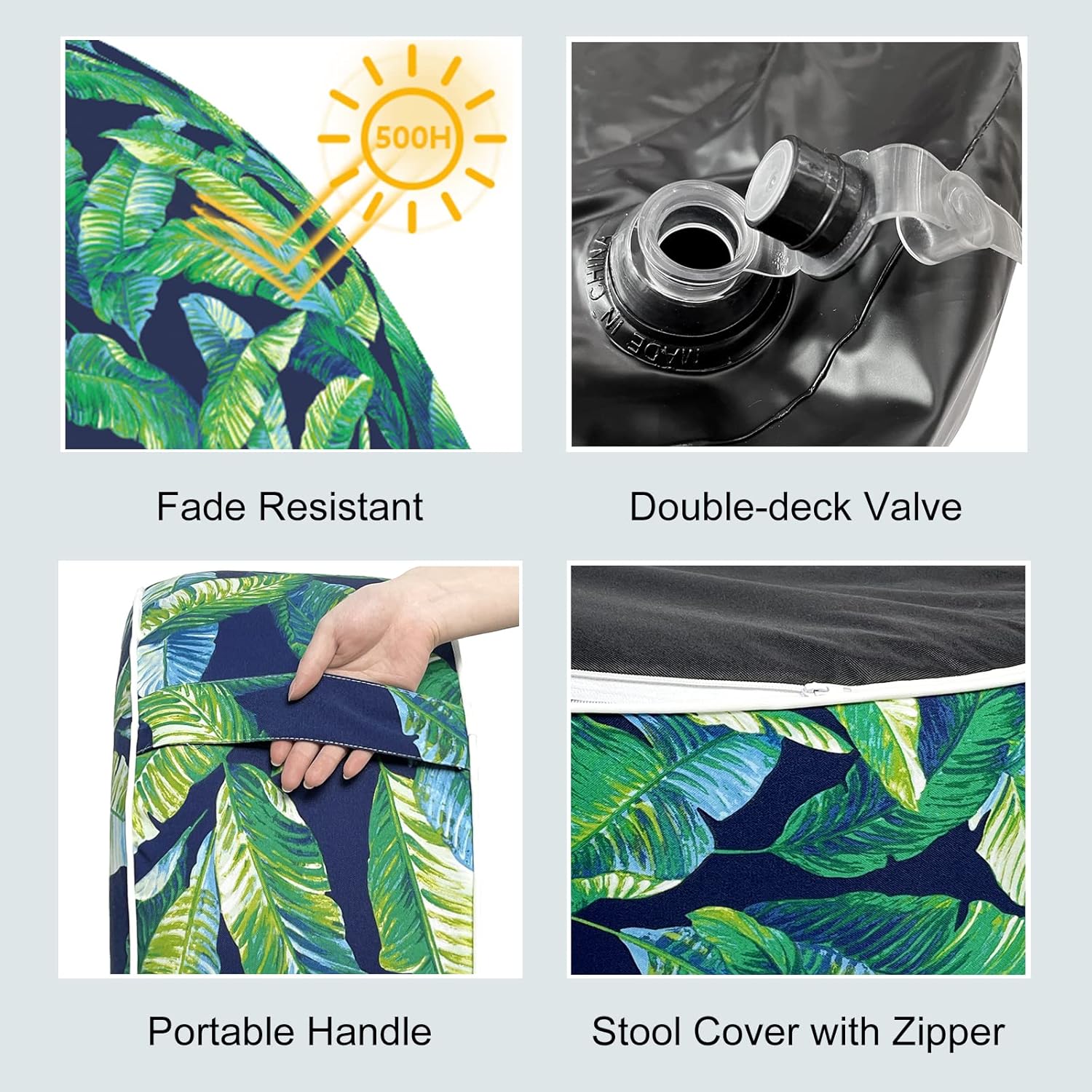 LVTXIII Inflatable Stool Ottoman Footrest with Handle, All Weather Footrest Seat, Indoor or Outdoor Pouf for Home Patio Garden and Camping Use, D31 xH14, Large Round, Hanalei Lagoon