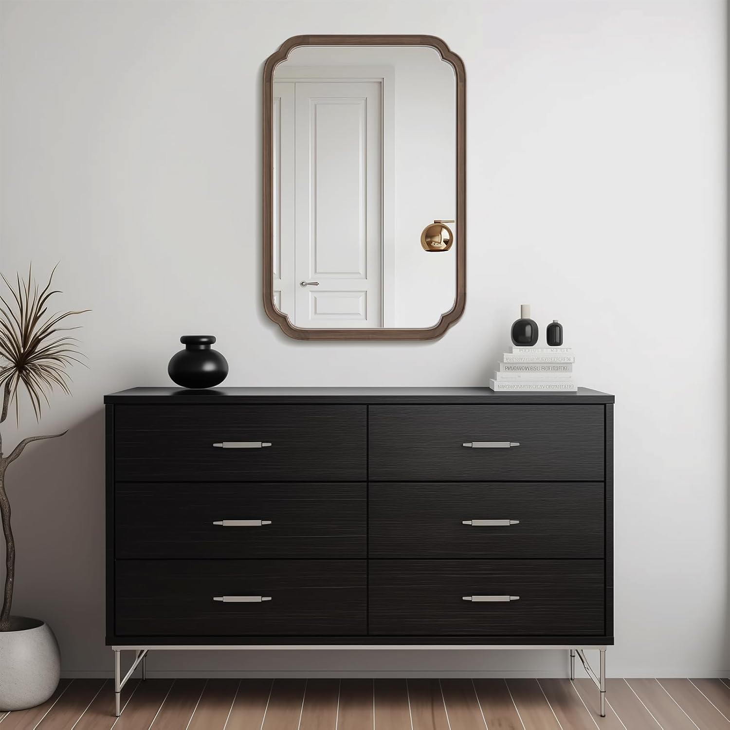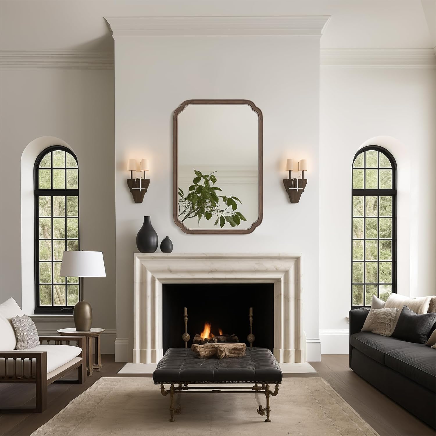 WallBeyond Wood Bathroom Mirror for Wall Mounted with Rounded Corner Wood Frame for Entryway, Living Room or Bedroom Home Decor Vertical or Horizontal Hanging [24" x 36" Walnut Color]