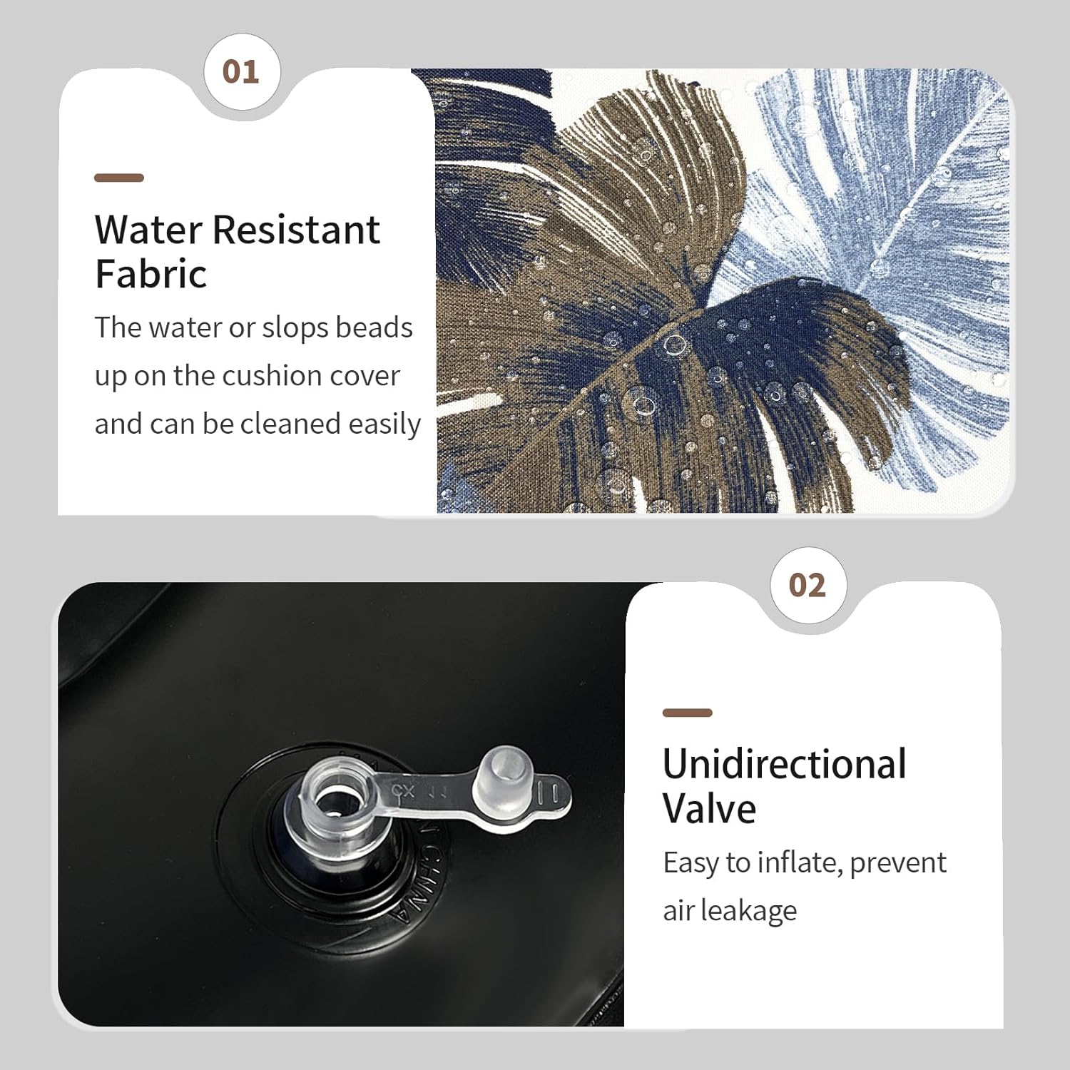 Inflatable Ottoman Stool D21 xH9 for Outdoor/Indoor Use, Water Repellent Patio Foot Rest Stool with Portable Handle,Round Pouf Ottoman Suitable for Garden,Deck and Camping - Monstera Blue