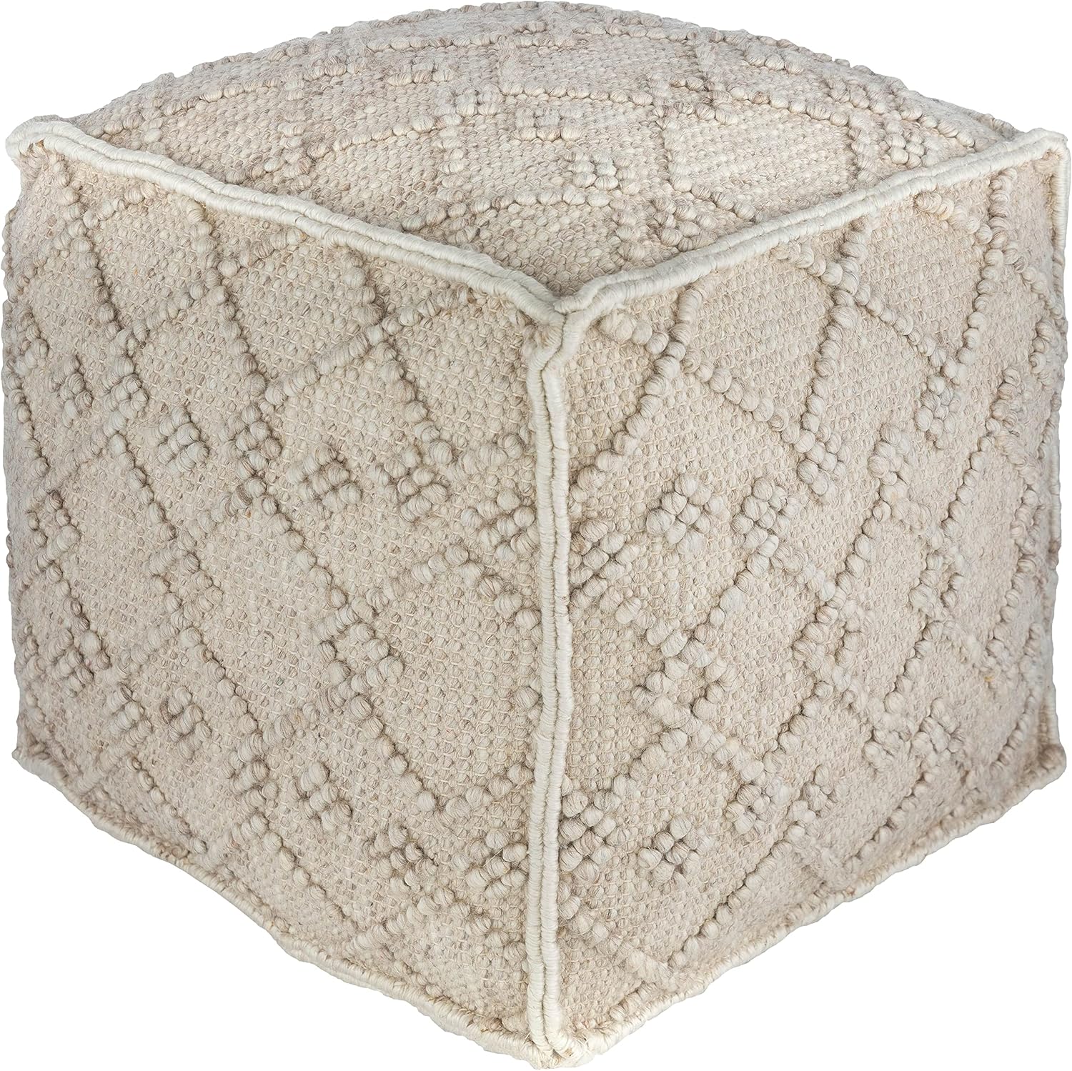 Mark&Day Pouf Ottoman, Lanzendorf Bohemian/Global White Cube Pouf Foot Rest for Living Room, Bedroom and Boho Home Decor (18"x18"x18")