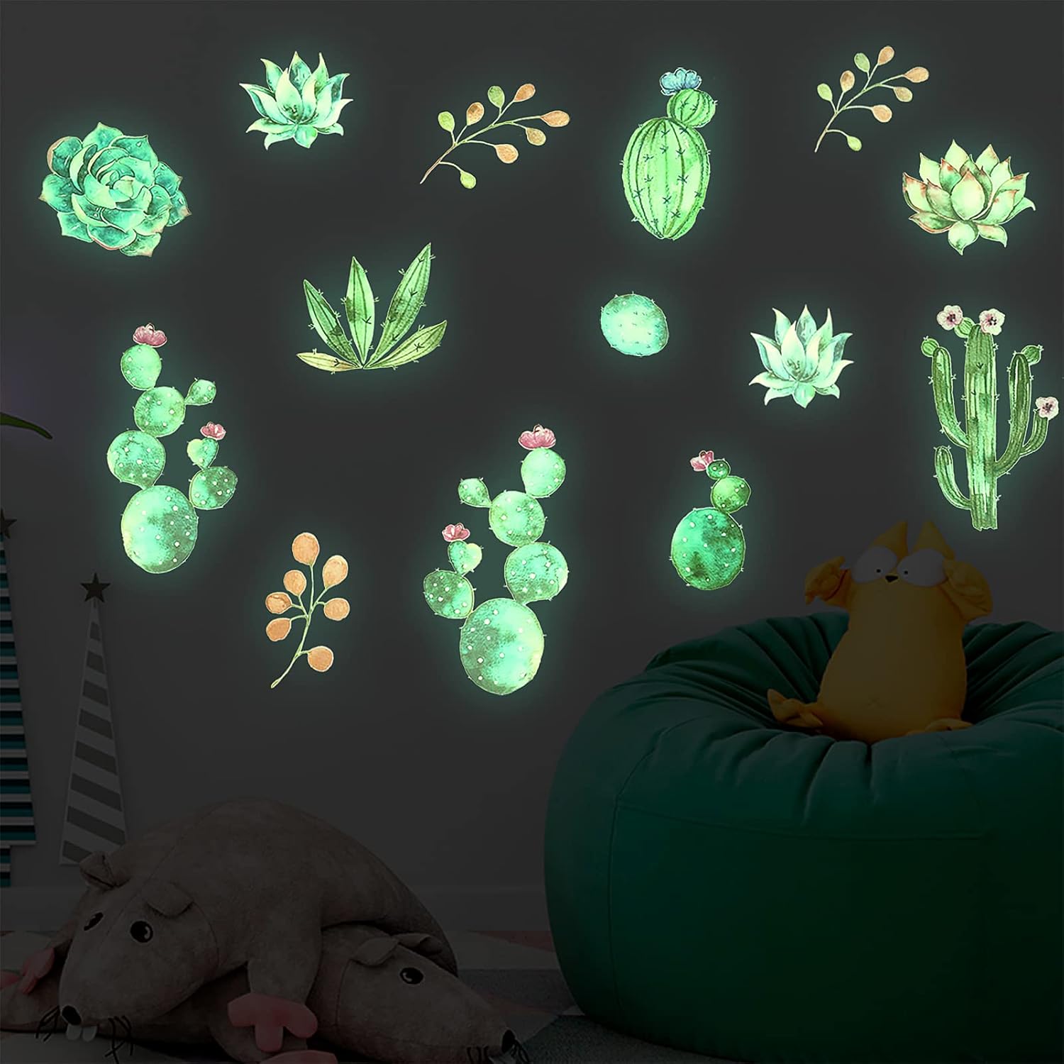 Luminous Window Wall Decals Switch Sticker Decoration Stickers for Home Office School Cactus