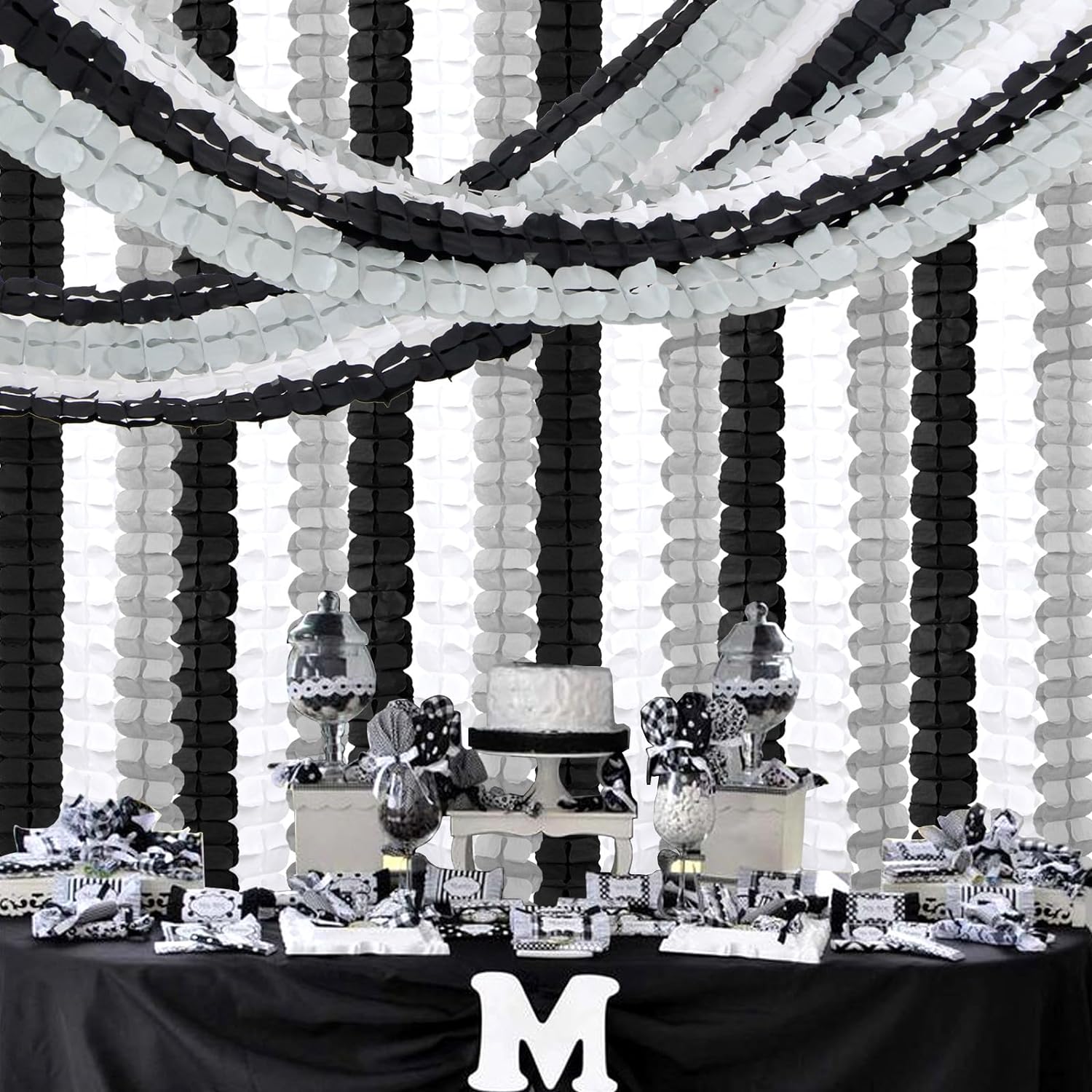 Black White-Silver Party-Decorations Streamers Garland - 157Ft Graduation Four-Leaf Clover Hanging Banner,Men Boys Birthday Engagement Wedding Baby Bridal Shower New Years Supplies Decor Hugtmr