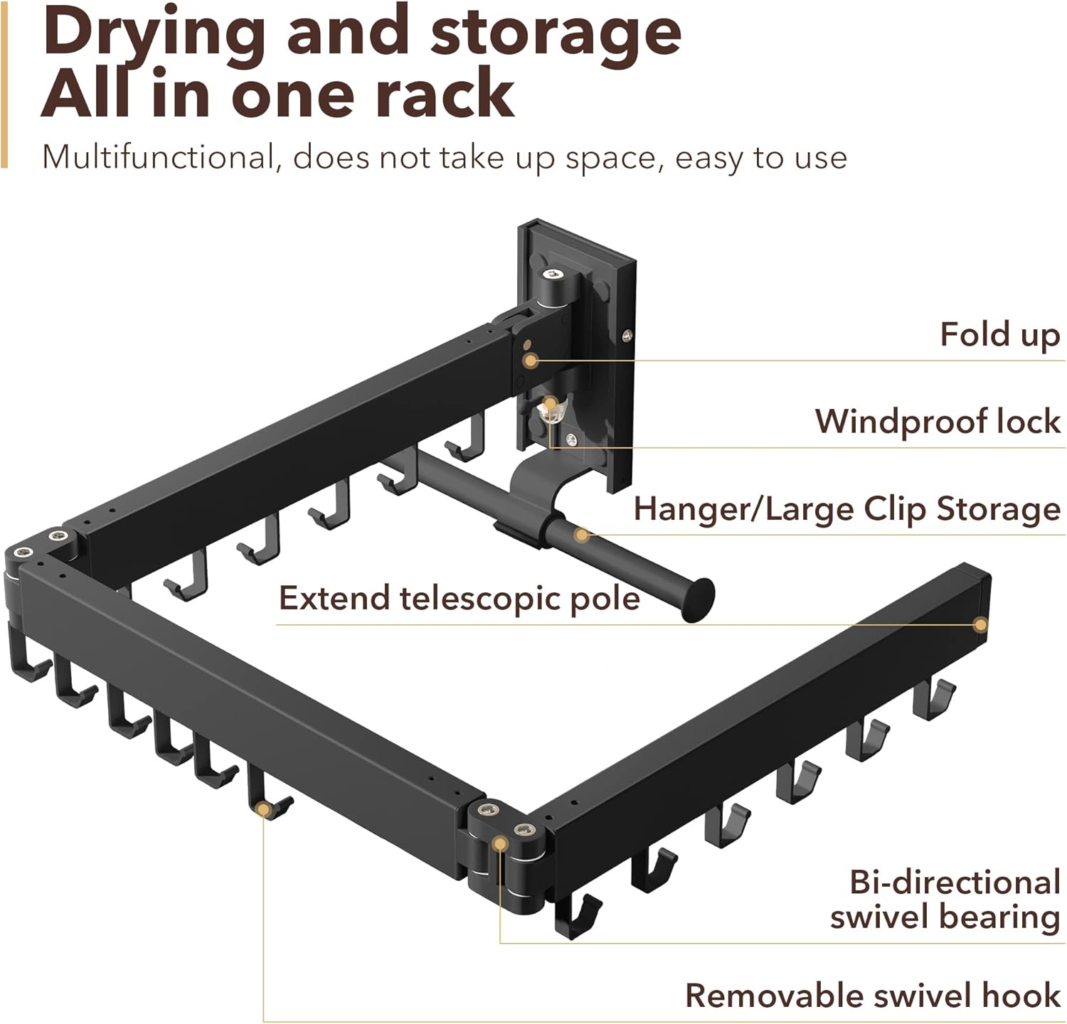 Wall Mounted Clothes Hanger,Clothes Drying Rack,Laundry Drying Rack,Drying Rack Clothing,Laundry Hanger Rack,Retractable Dryer Racks,Collapsible, Aluminum,can be Fold Upward & Left & Right