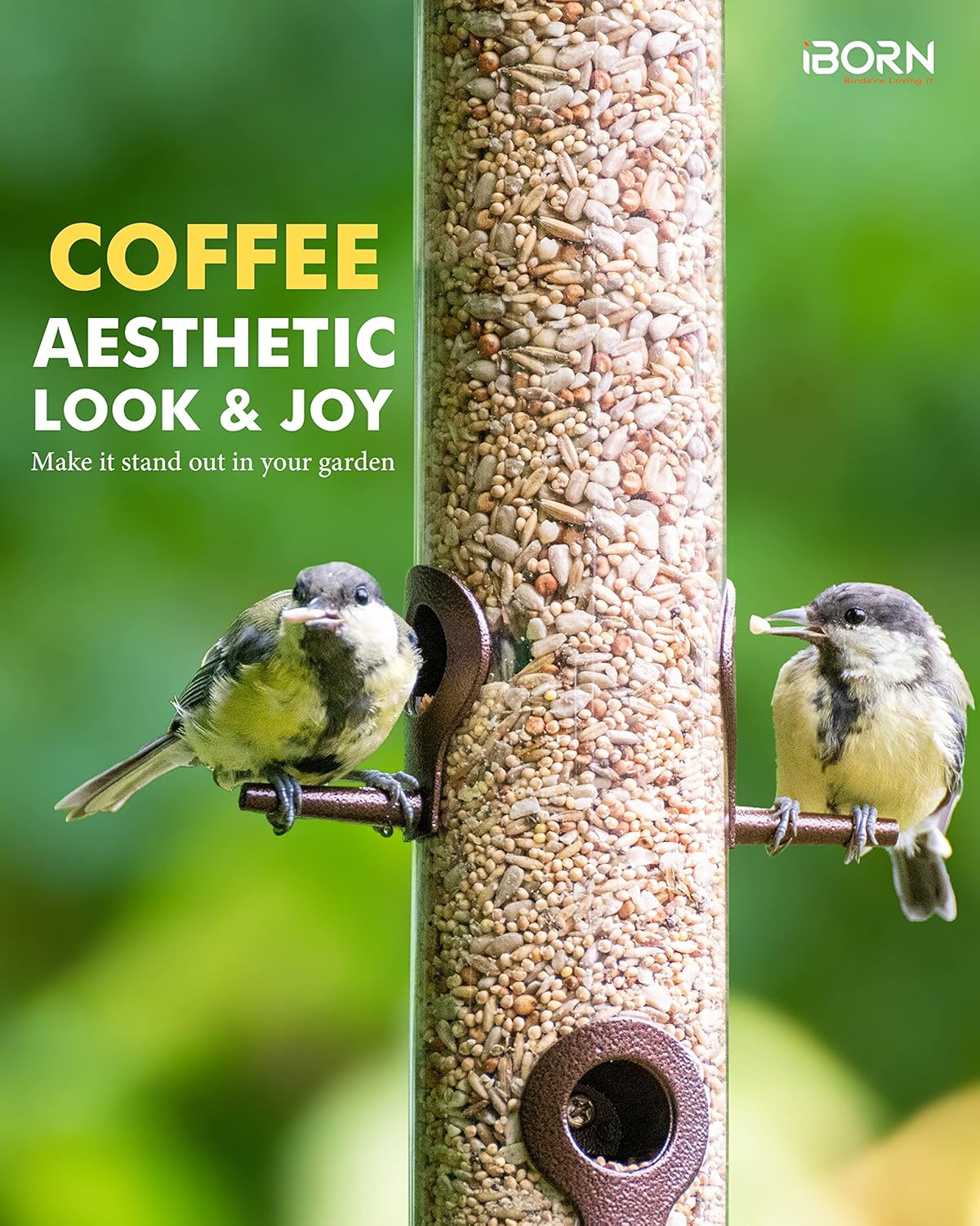 - 【Coffee Power Coated,No Color Fading, Great for all the year round feeding】Wear and Worn, Never Rust. All Metal top, base, feeding ports, perches, coffee power-coat,rust resistant, robust construction to sustain all weather days. It features royal-stylistic coffee outlook, traditional design inviting more feather birds to your garden, add more liveness to your garden life.