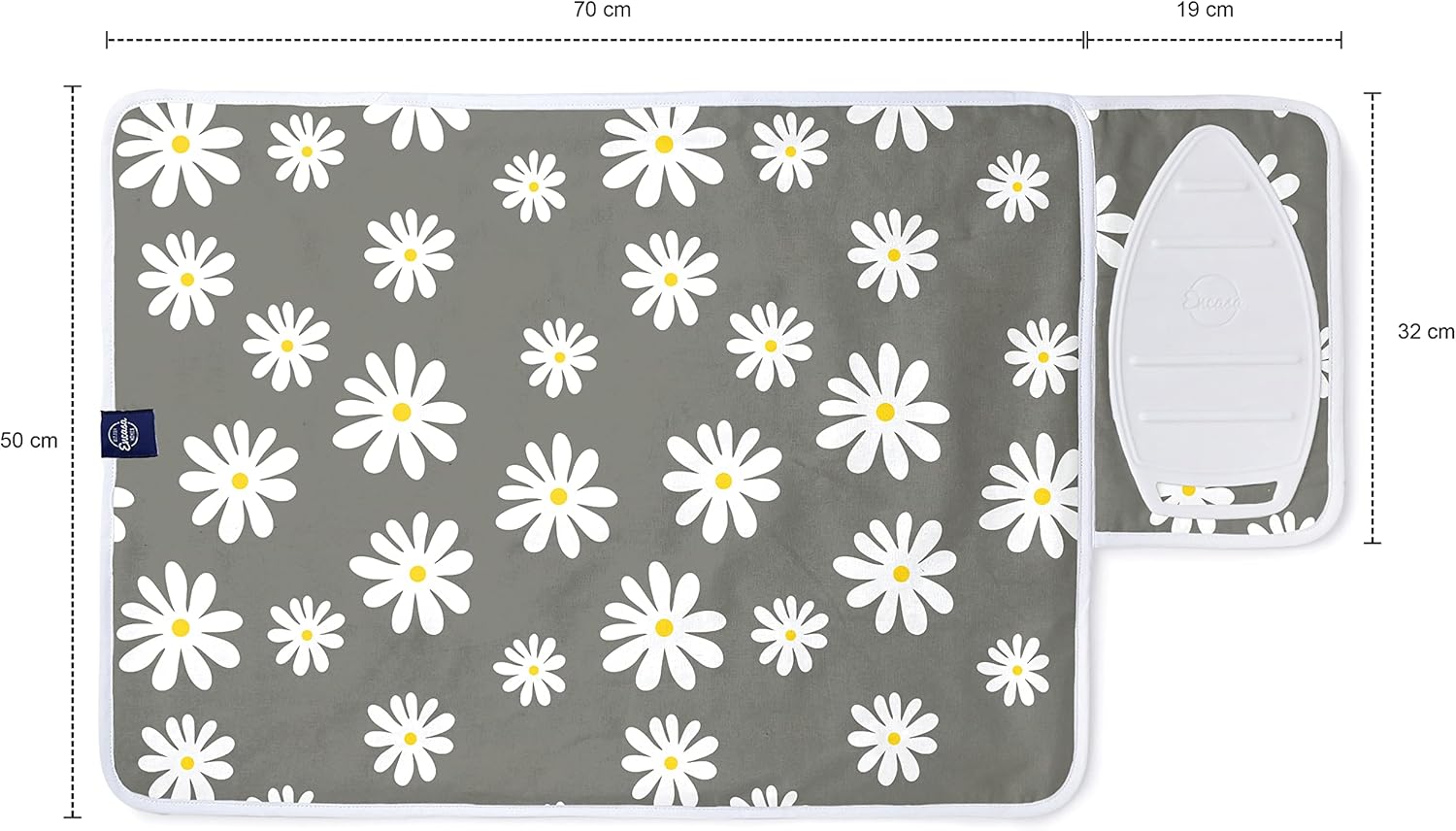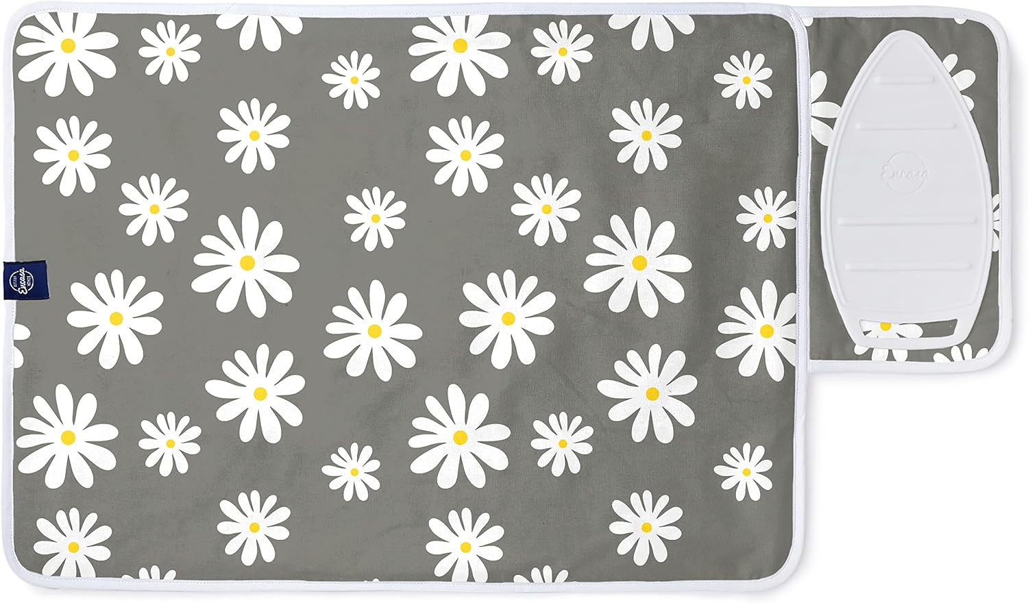 Encasa Homes Ironing Mat/Pad (Small 28"x20") with 3mm Padding & Silicone Iron Rest for Steam Pressing on Tabletop or Bed - Heat Resistant, Portable, Quilting & Travel Blanket - Daisy Grey