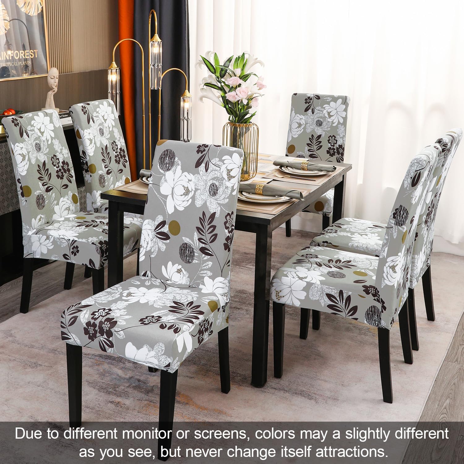- 【High Quality of Chair Cover】- JQinHome dining room chair coversare made of durable and high persistence polyester and stretchy spandex fabric, soft, comfortable and wrinkle resistant, no ironing required; Stretchable Material,stretch that recovers quickly,secure fit with sewn-in elastic hem.