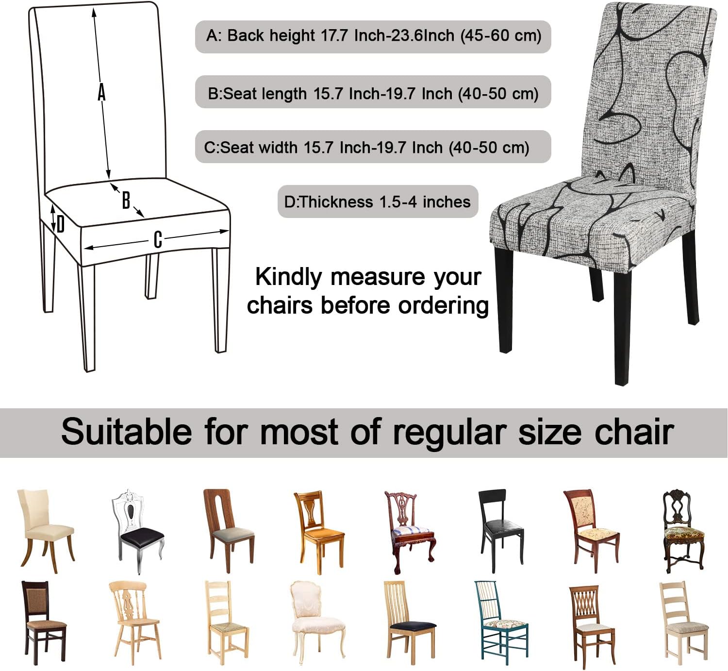 - 【Suitable for Chair Size】- Chair back height 17.7 Inch-23.6Inch (45-60 cm), chair-back width 15.7 Inch-19.7 Inch (40-50 cm),Inch Chair seat length and width 15.7 Inch-19.7 Inch (40-50 cm).Thickness 1.5-4.5Inch (4-12 cm). Please check the measurement guide in the item picture before order..(Please allow 0.5-1 inch error due to manual measurement.)