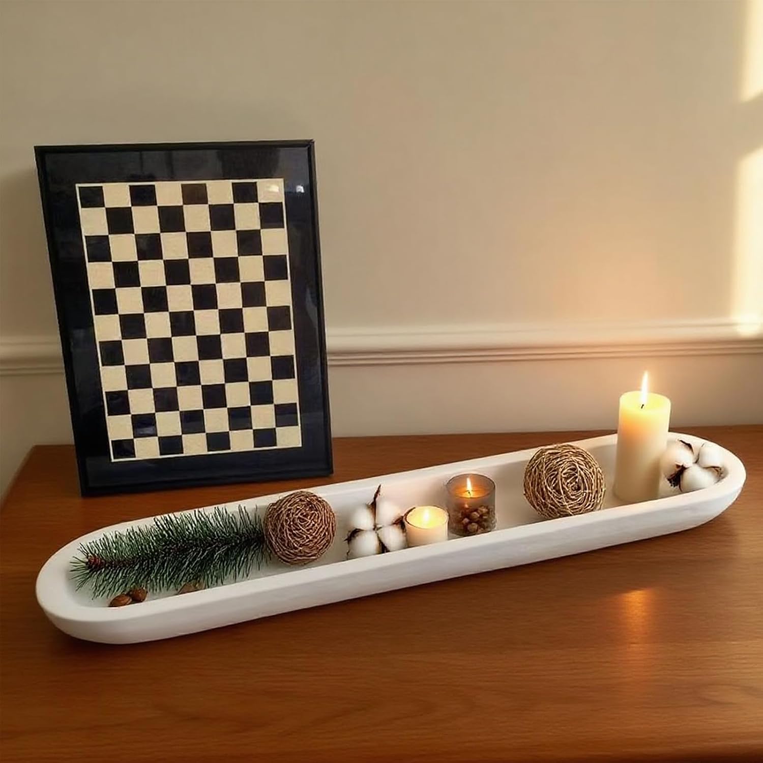 Wooden Dough Bowl Decor, Vintage Wooden Bowl Hand Carved Home Decor for Dining Table Center, Living Room, Kitchen Decor. (30inch white)