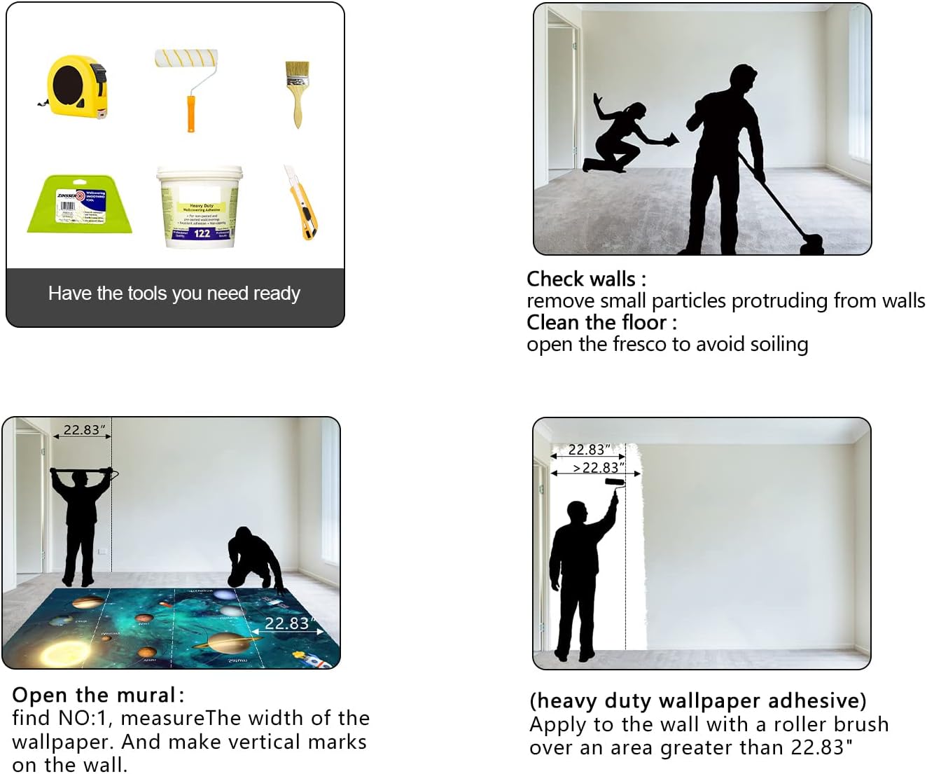 - It's easy to install: at the bottom of each mural we have a numbered sequence, You can refer to the instructions we provided and the main picture 6-7,just match the numbers and you'll be amazed!