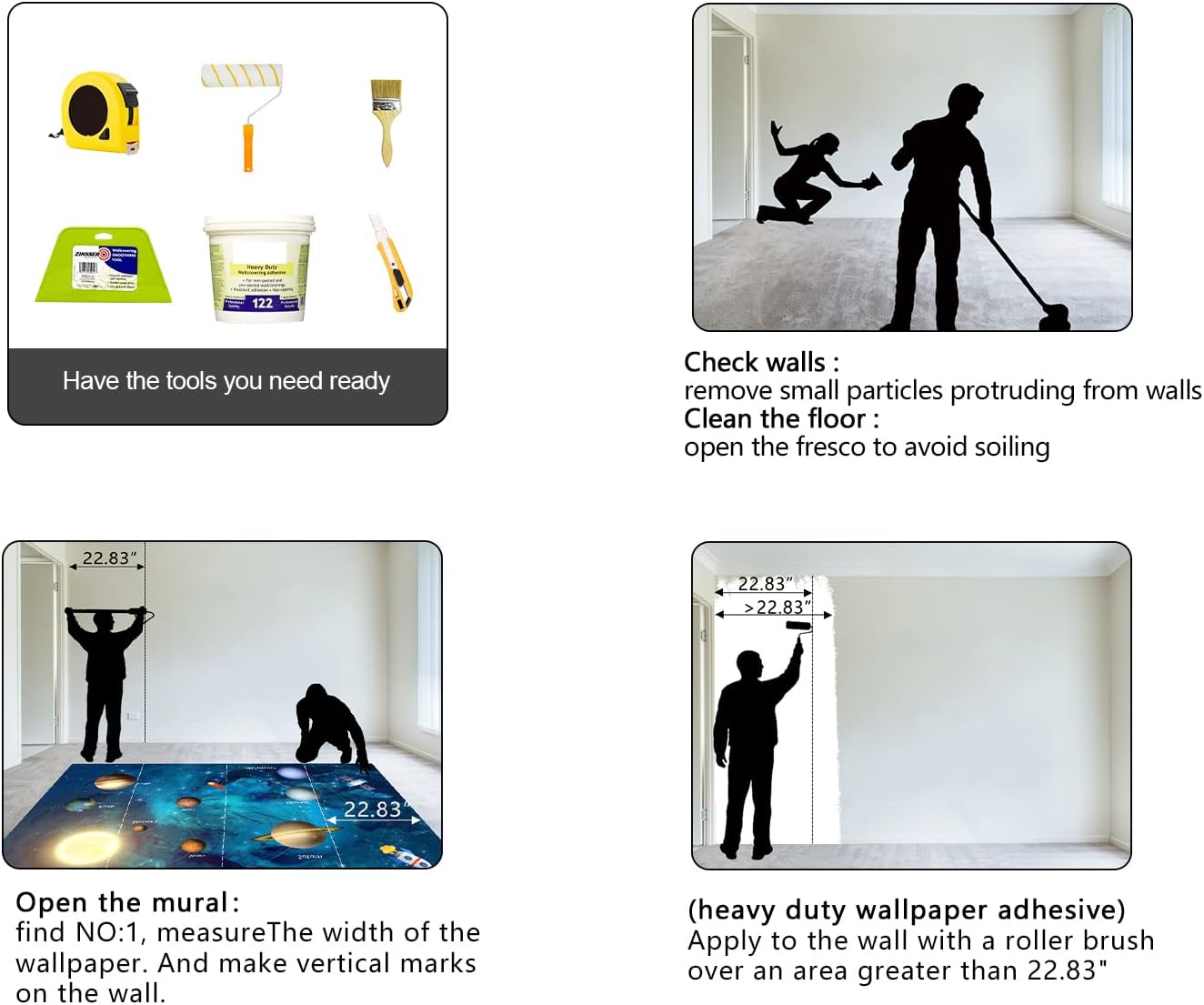 - It's easy to install: at the bottom of each mural we have a numbered sequence, You can refer to the instructions we provided and the main picture 6-7,just match the numbers and you'll be amazed!
