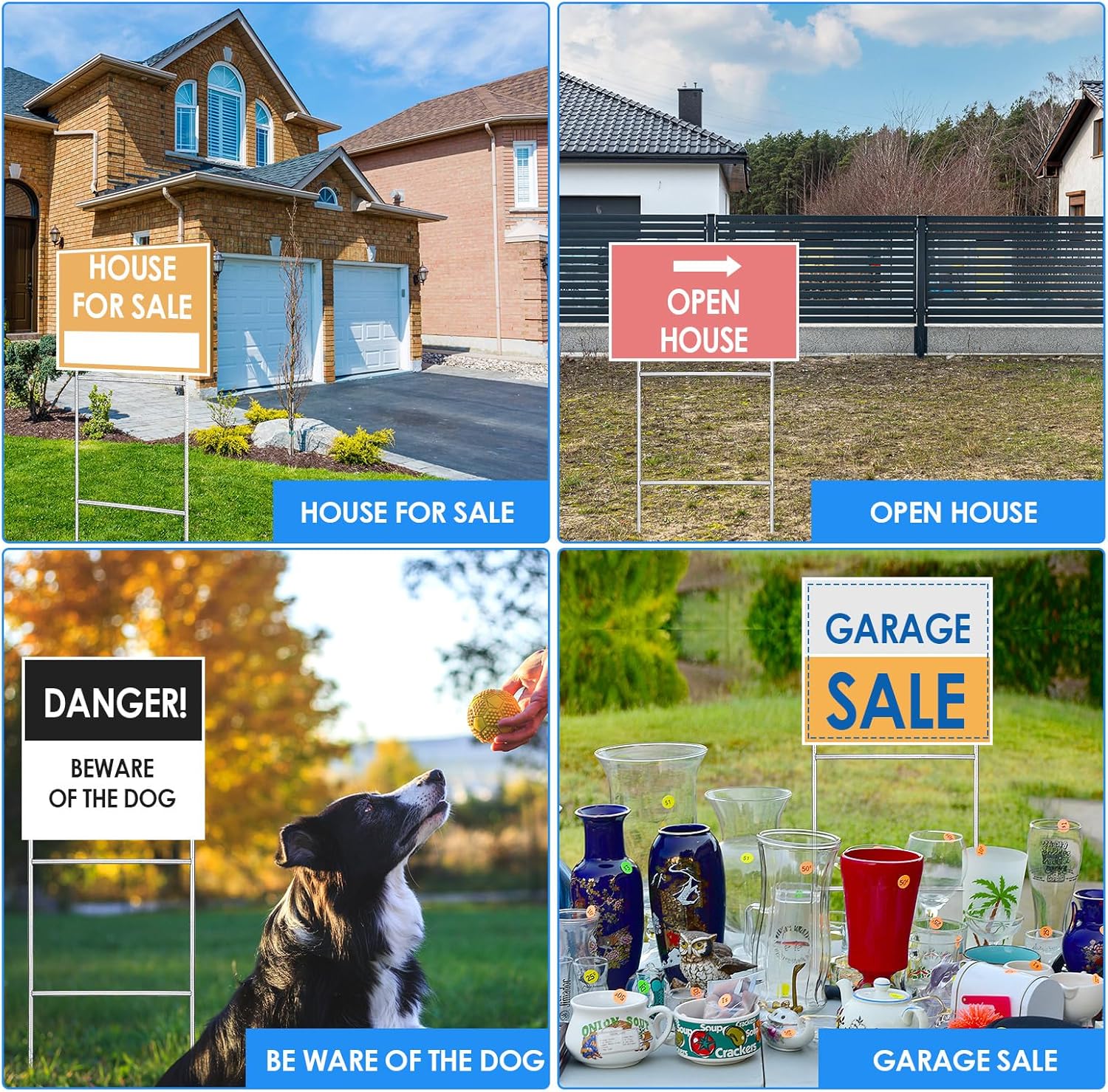 - Wide Usage: these wire yard sign stakes fit for most corrugated plastic yard signs; They are widely applied in various advertising boards, such as yard sale signs, estate sale signs, open house signs, house for sale signs, garage sales signs, and they also can be applied to guide guests for party, wedding, bridal shower and other activities