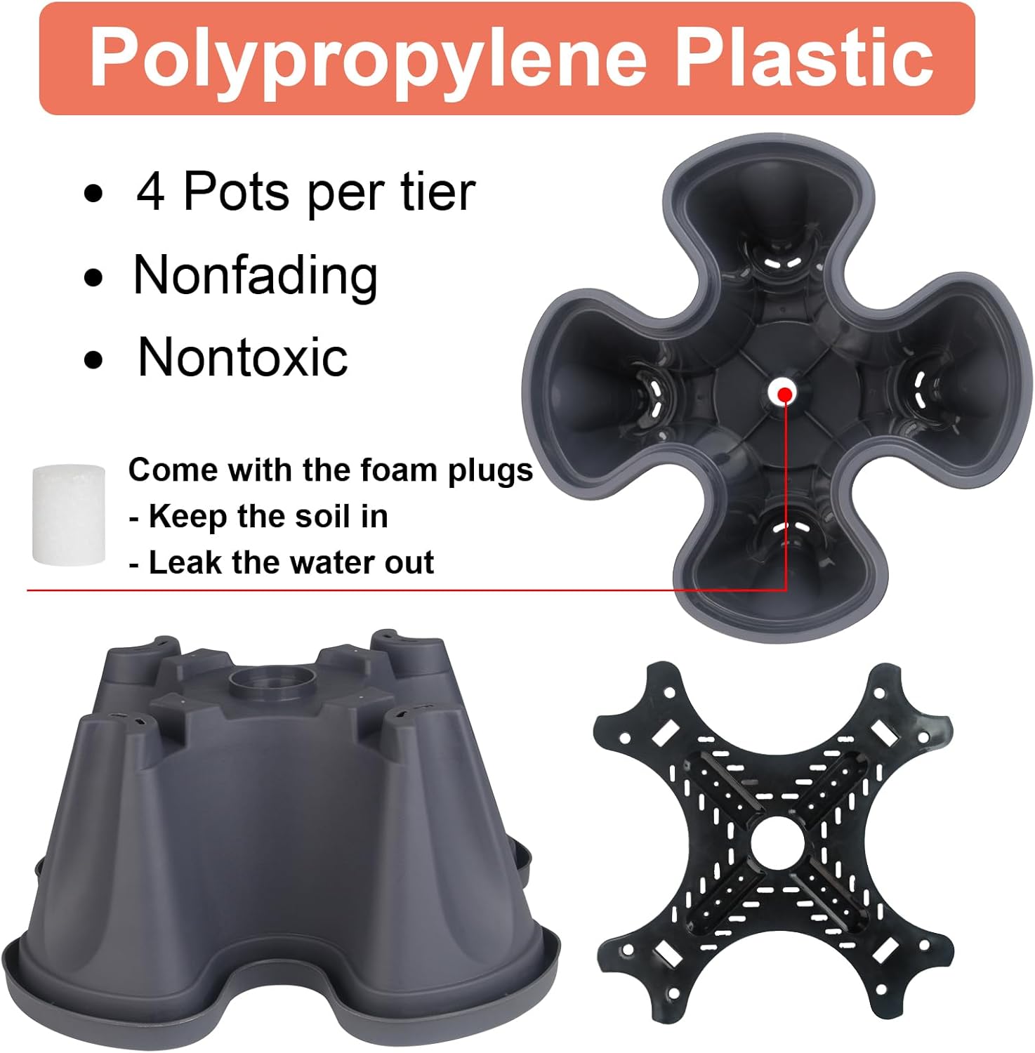 Vertical Planter 5 Tier Stackable Planters Garden Planters Strawberry Herb Flower and Vegetable Planter Indoor Outdoor Gardening Pots with Removable Wheels and Tools