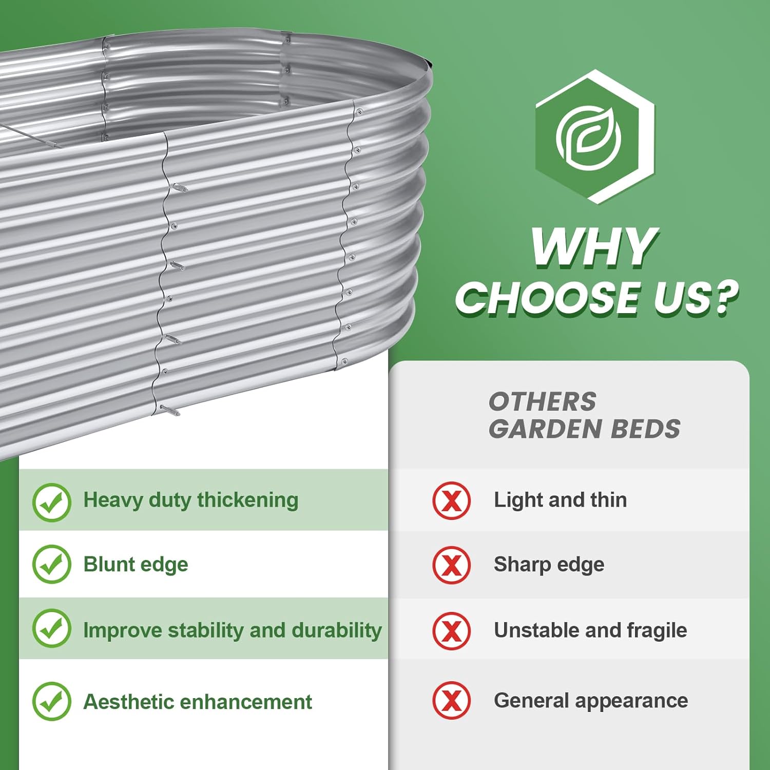 - Upgraded quality and structure: raised garden beds outdoor are made of Q195 galvanized metal sheet, double-layer anti-corrosion galvanizing and oval structure design, which is more beautiful, can withstand greater pressure at the interface, is not easy to loose, and the interface will not Deformed and can be reused for many years.