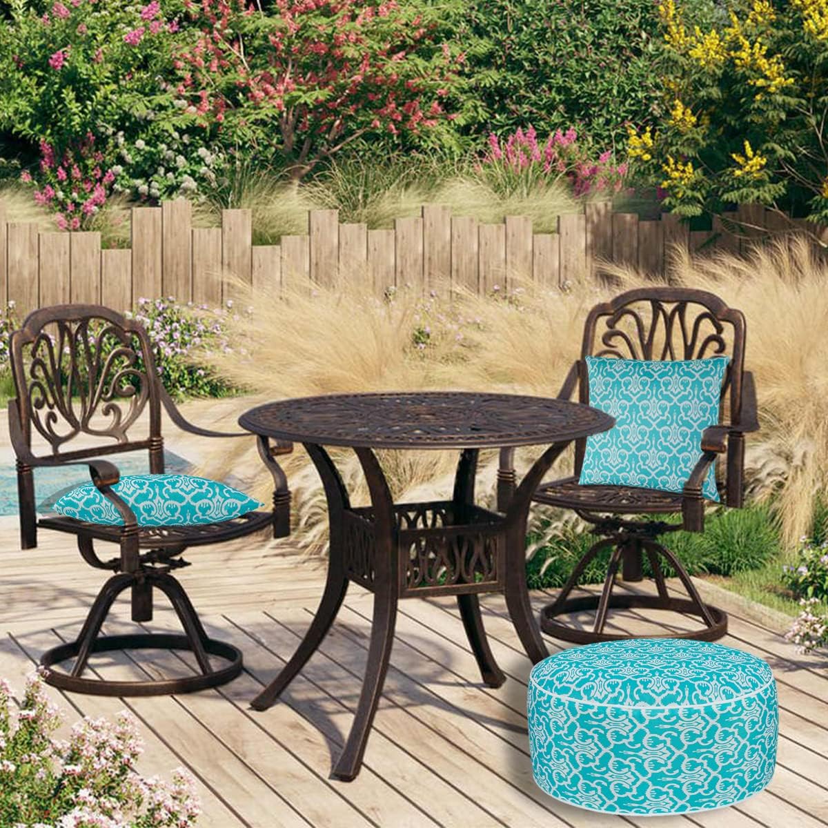 FUNHOME Inflatable Outdoor Ottoman with Air Pump,20"x9" Portable Patio Pouf,Water Resistant,Fade-Resistant,Round Blow Up Footrest Stools for Home Garden Camping Travel(Romantic Blue)