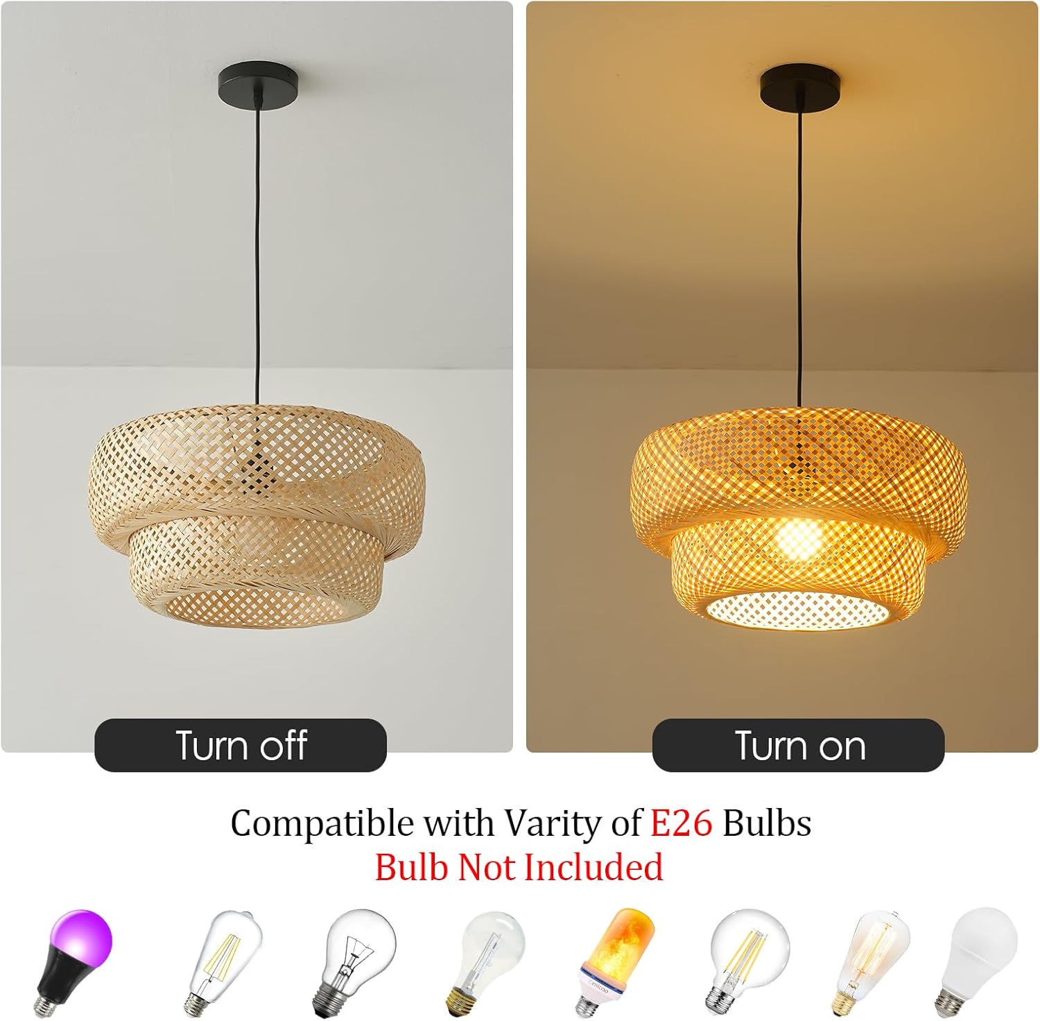 - 【Excellent Design】Bamboo/wood/rattan, the pendants are made of natural materials. The lights are hand woven with natural bamboo by superb skills bamboo artists. Decorated with classic tropical style elements, creates a wonderfully new look