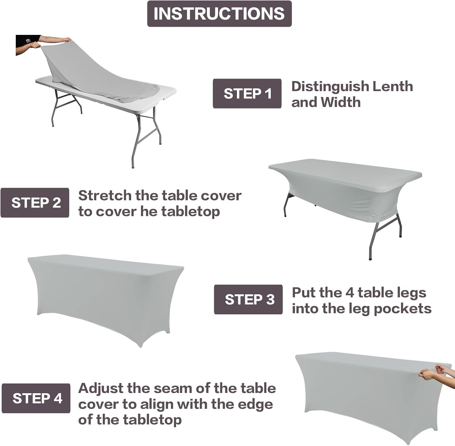 IVAPUPU 2 Pack 4FT Table Cloth for Rectangular Fitted Events Stretch Grey Table Covers Washable Cover Spandex Tablecloth Protector for Party, Wedding, Cocktail, Banquet, Festival
