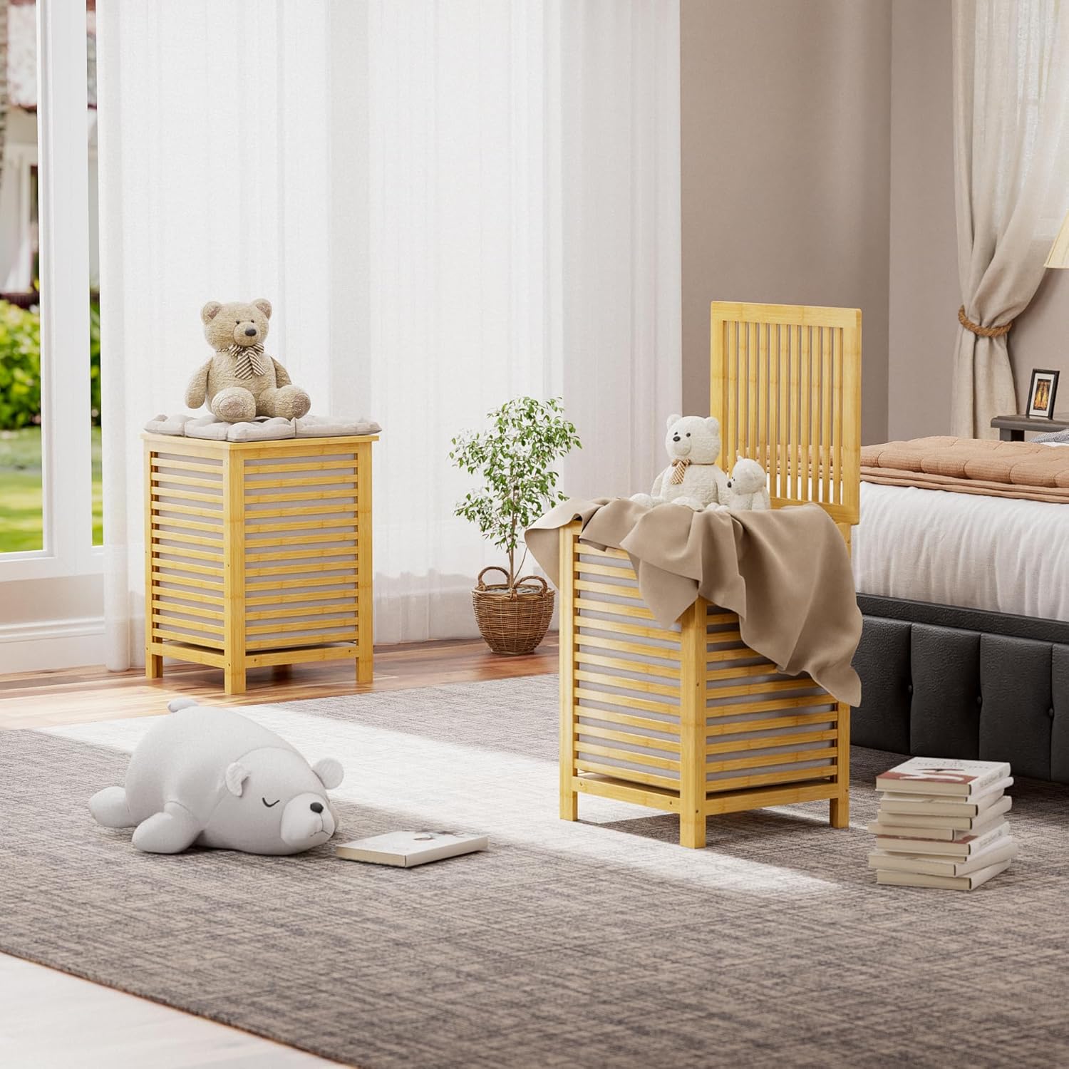 - β LARGE CAPACITY YET SPACE SAVING: This spacious double washing hamper measures 18. 5''D x 18. 5''W x 25. 6''H (47 x 47 x 65 cm), up to 120L, roomy enough to hold lots of clothes, towels, toys, etc. Boasting a narrow vertical design for space efficient storage in your bedrooms, bathroom, dorm