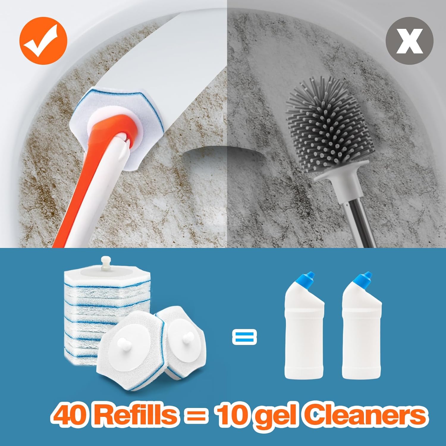- 40 Pcs Disposable Cleaning Refills: The disposable toilet brush cleaner comes with 40 refills, which equals with 10 gel cleaners. Itβs super cost-effective and can use for more than 2 months for a normal family