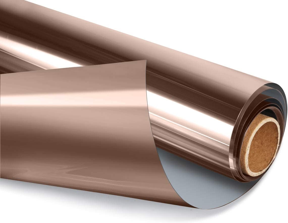 HIDBEA One Way Privacy Window Film, Daytime Mirror Reflective Heat Control UV Sun Blocking Non-Adhesive Static Cling Window Tint for Home and Office (Brown-Silver, 29.5 Inch x 6.5 Feet)