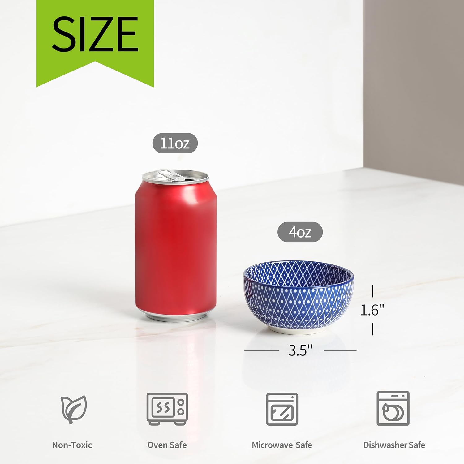 Selamica Ceramic 4 OZ Dipping Bowls Set, 3.5 Inch Mini Bowls for Dipping, Side Dishes, Microwave Dishwasher Safe, Set of 6, Vintage Blue