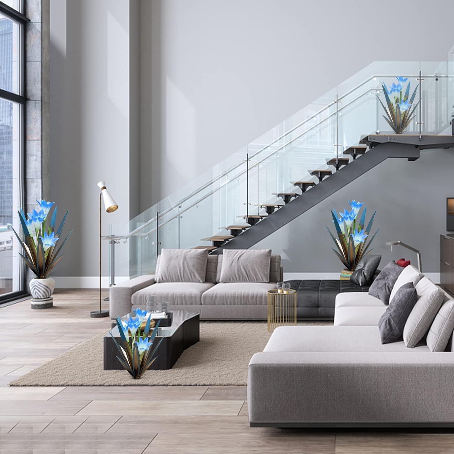 Homight Metal Agave Plant Outdoor Decoration Outdoor Garden Decoration Lily Mexican Yard Art Plant Garden Agave Lily Decorative Garden Gift… (2 Big Blue Lilies)
