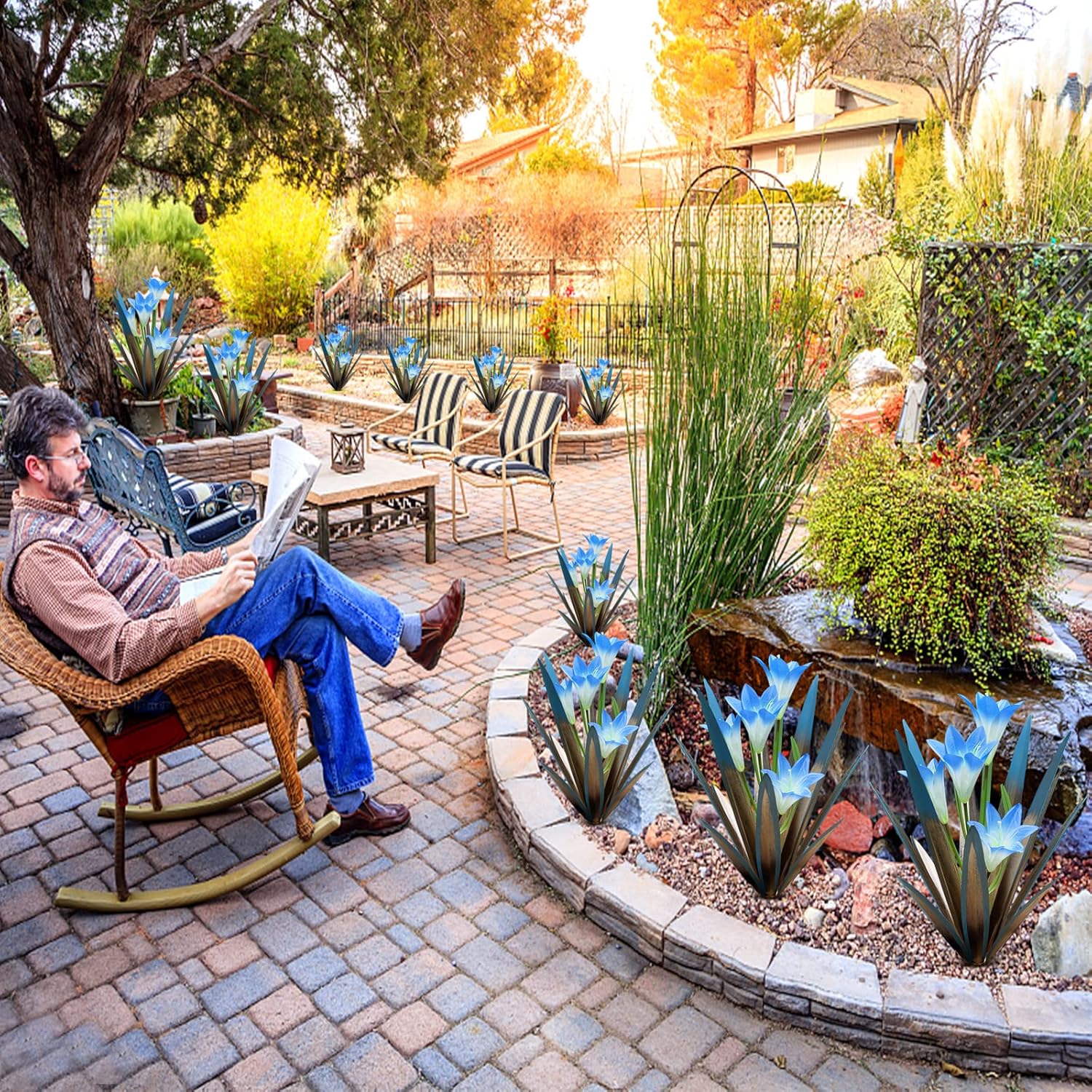 Homight Metal Agave Plant Outdoor Decoration Outdoor Garden Decoration Lily Mexican Yard Art Plant Garden Agave Lily Decorative Garden Gift… (3 Big Blue Lilies) (HM-390-345)