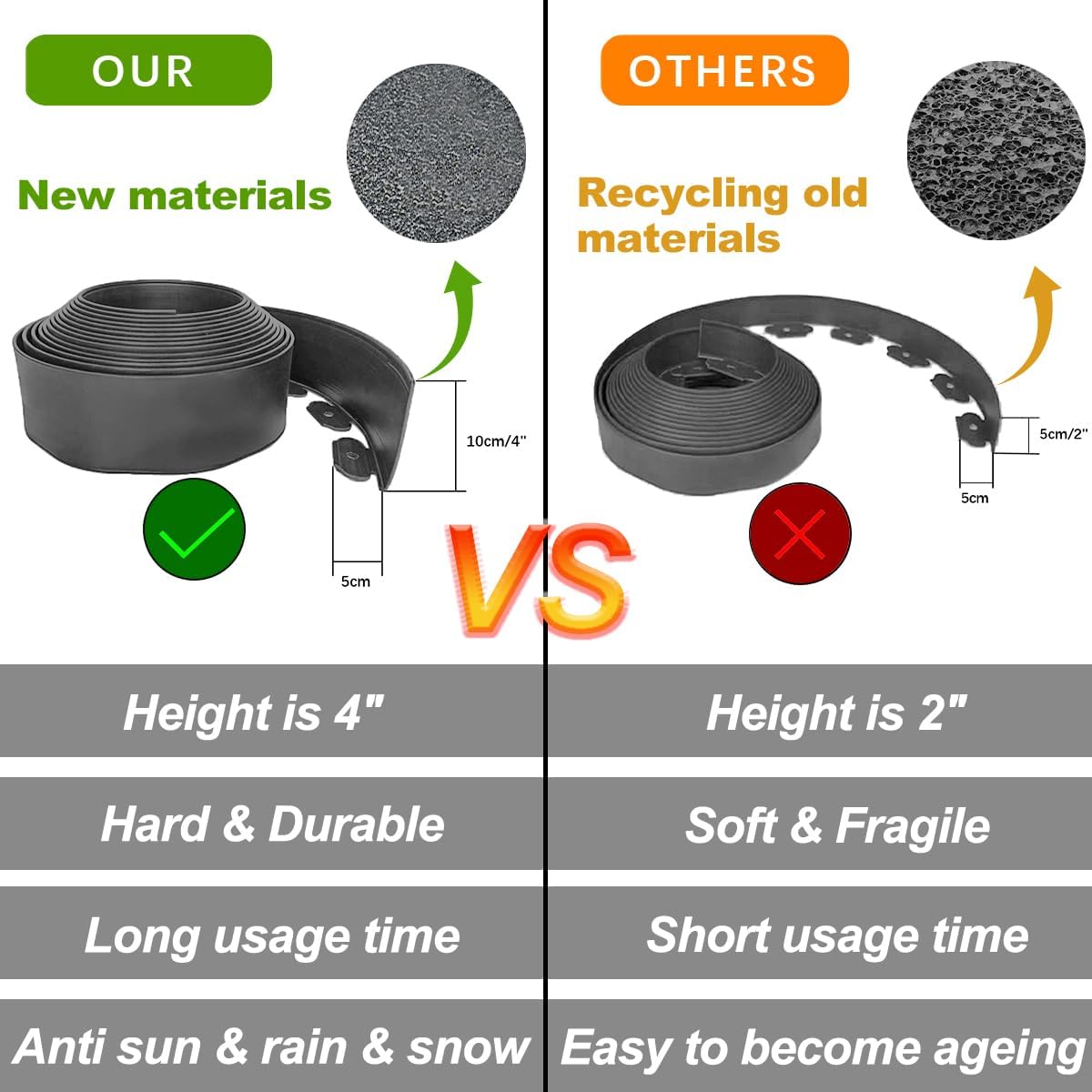 - < Durable & Flexible > Landscape Edging is made of premium PE material,which is flexible to be made straight or curve easily according your need. Easy to cut and durable to withstand the tough sunlight , heavy rain, snow etc.