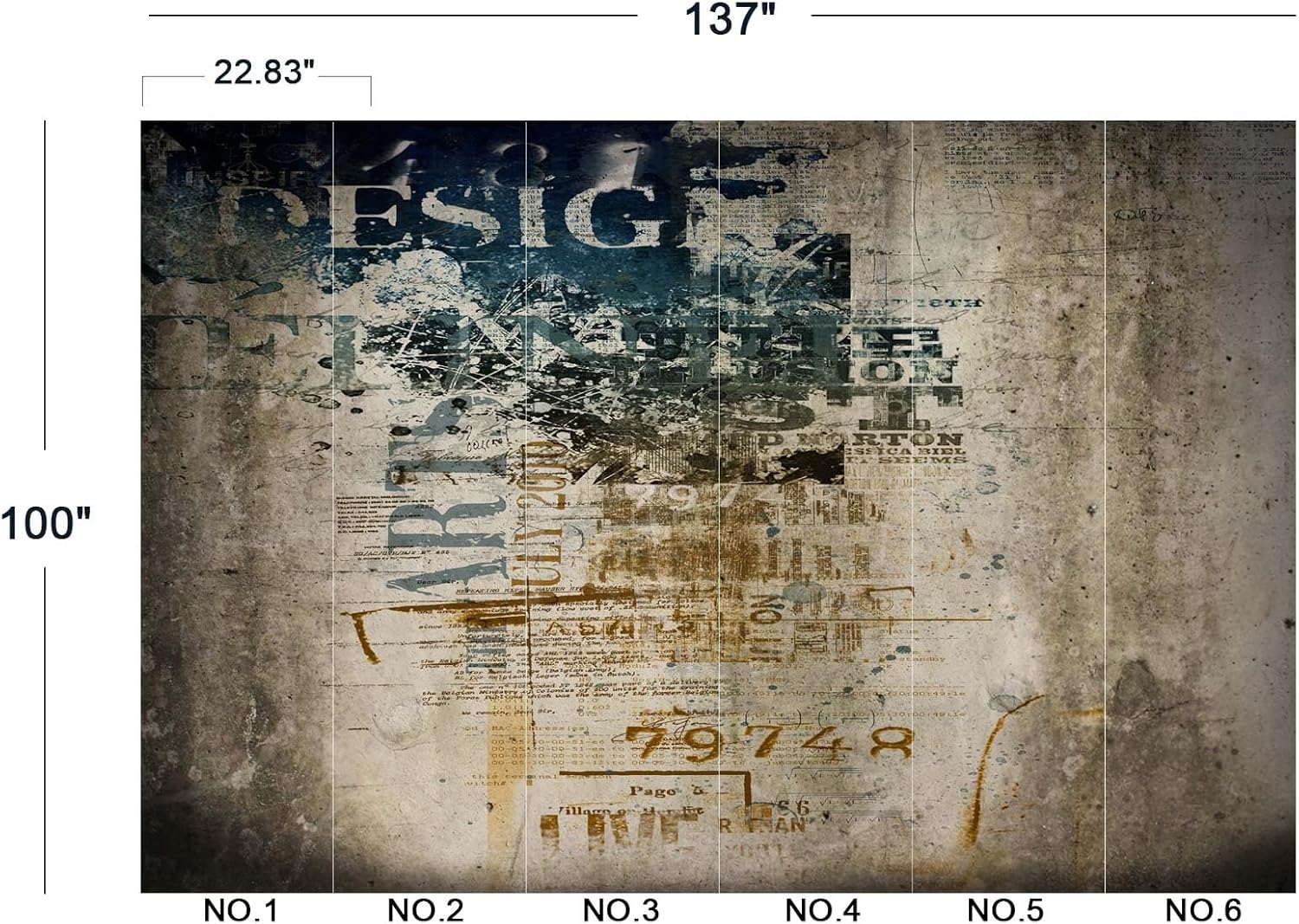 - The size of the wallpaper is 137" wide x 100" high and divided into 6 panels.