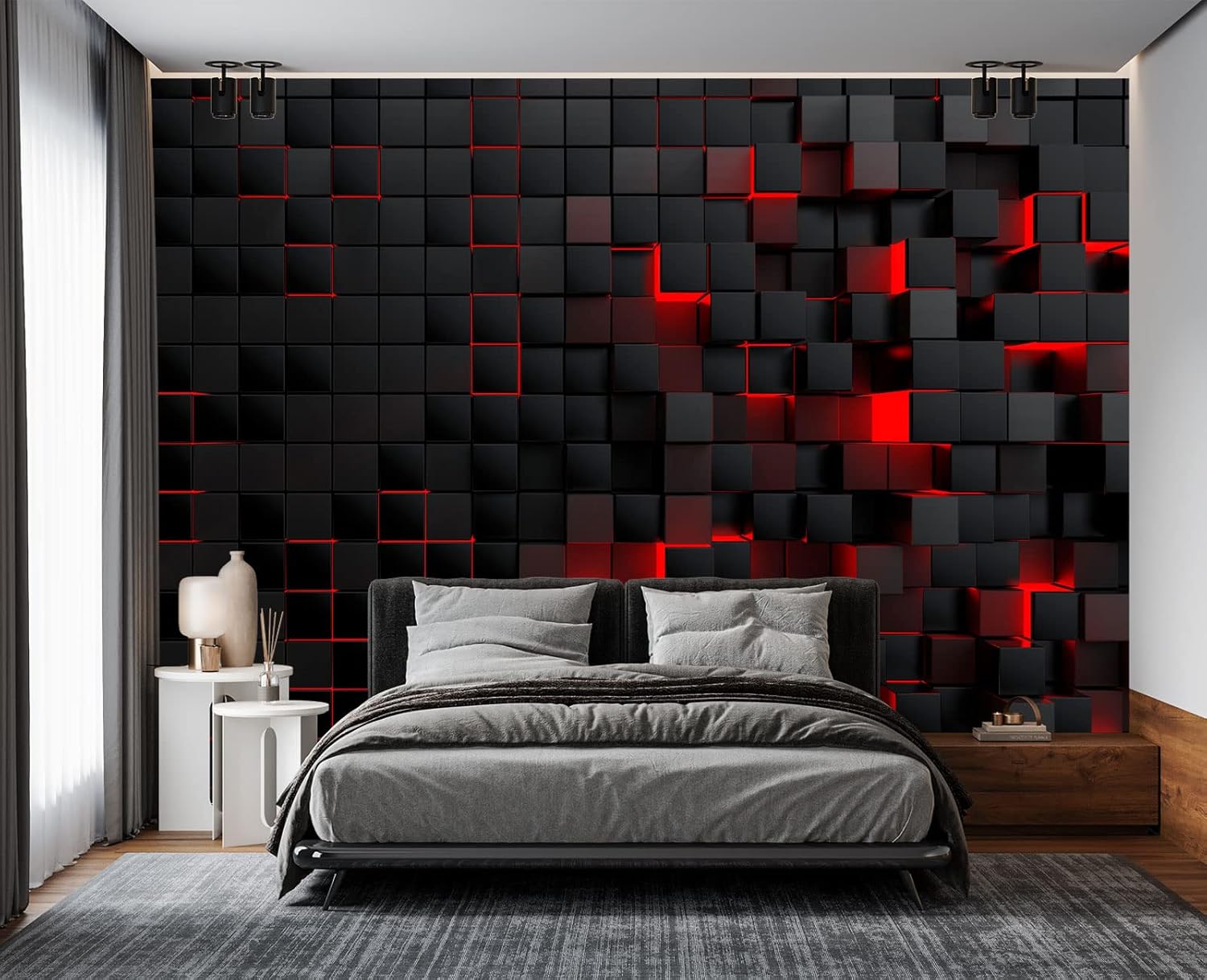 Tech Red Blocks Wall Mural Wallpaper for Bedroom 103" x 69"