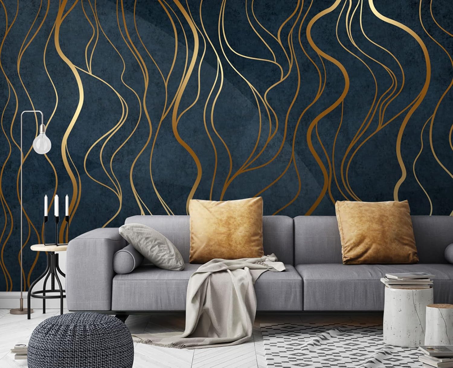 Simple Golden Lines Wall Mural Wallpaper for Bedroom 178" x 117"