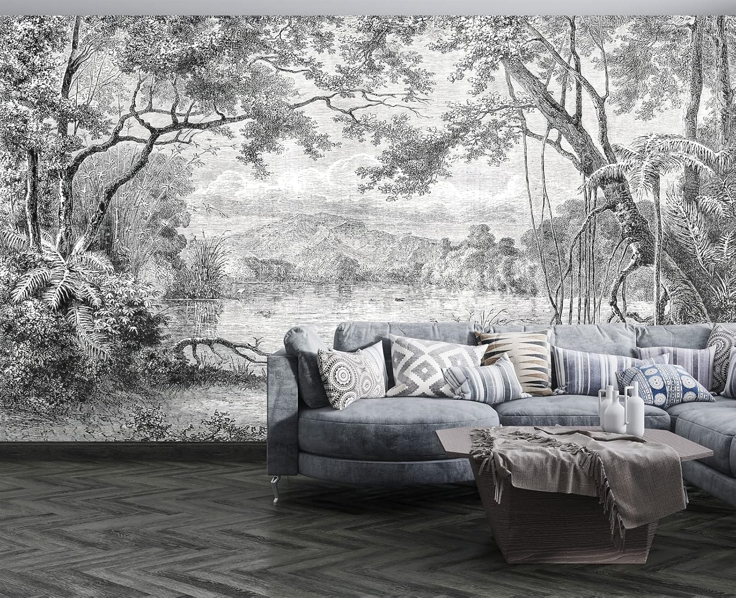 Black and White Tropical Rainforest Wall Mural Wallpaper for Bedroom 103" x 69"