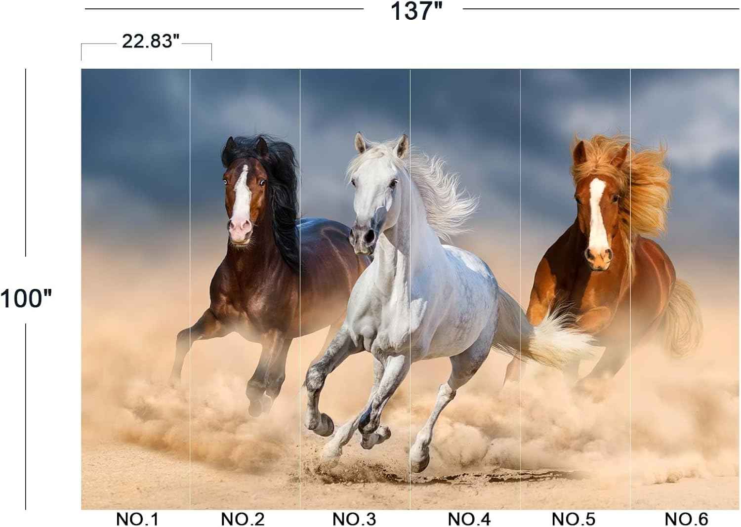- The size of the wallpaper is 137" wide x 100" high and divided into 6 panels.