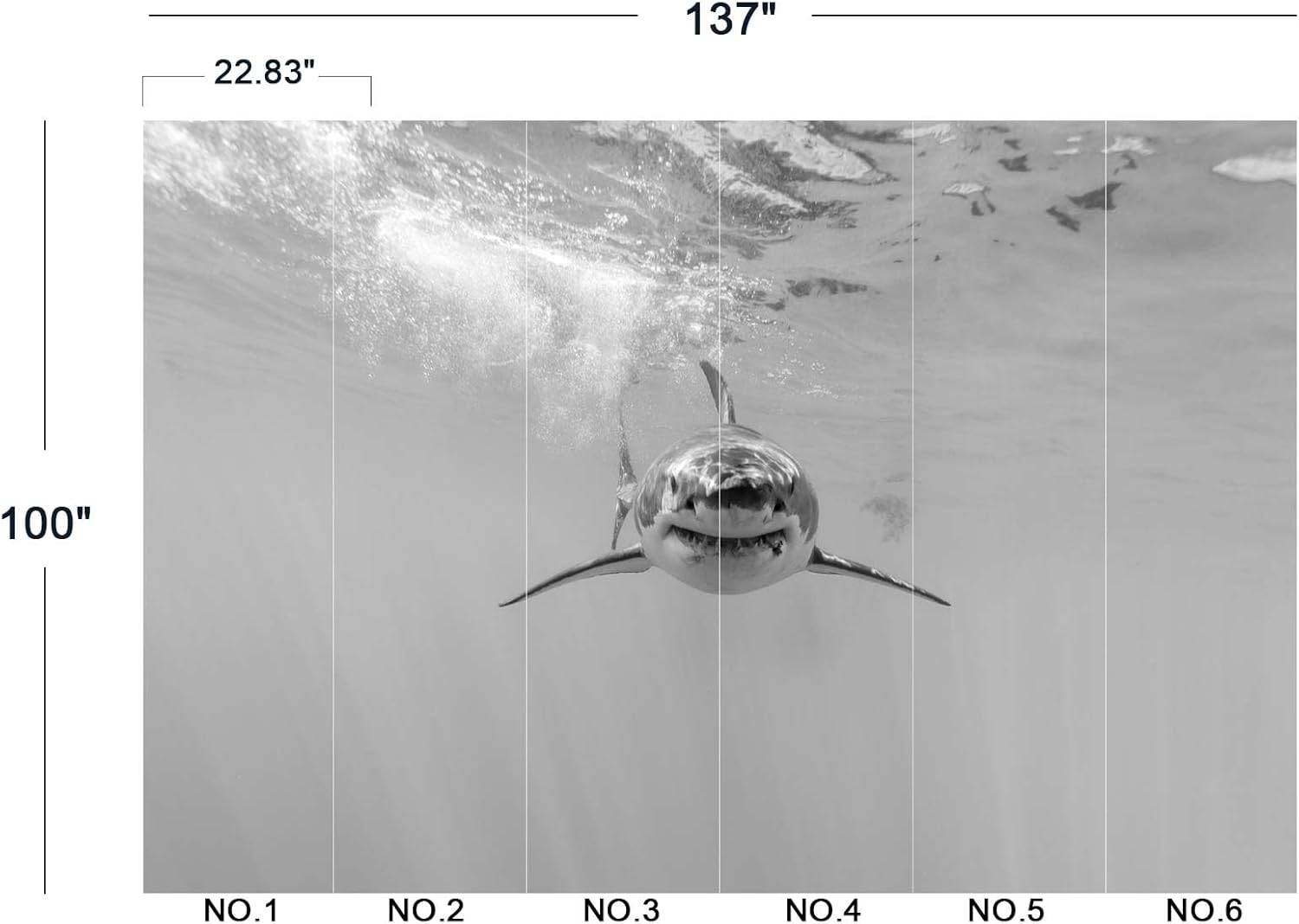 - The size of the wallpaper is 137" wide x 100" high and divided into 6 panels.