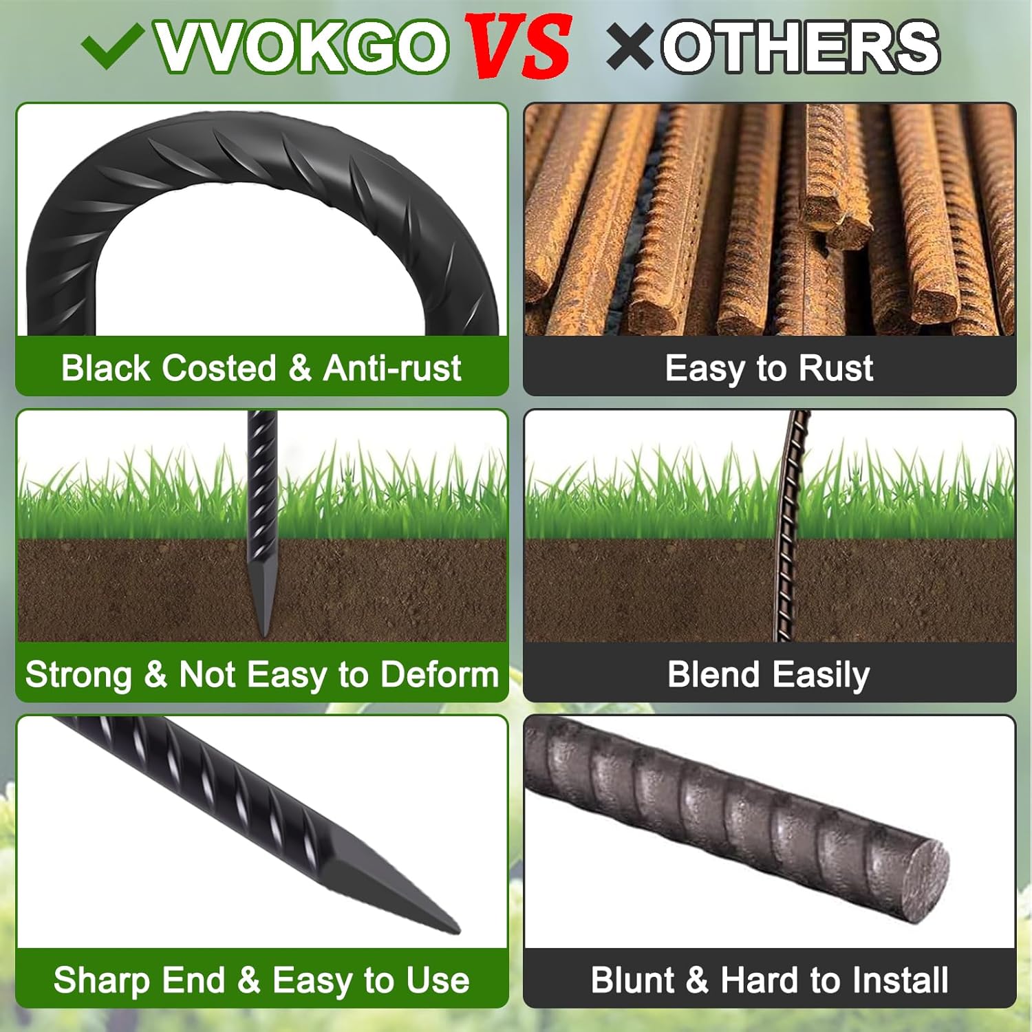 - High Quality Galvanized Stakes--The heavy duty ground stakes are made of premium steel rebar with excellent strength, durability, and corrosion resistance