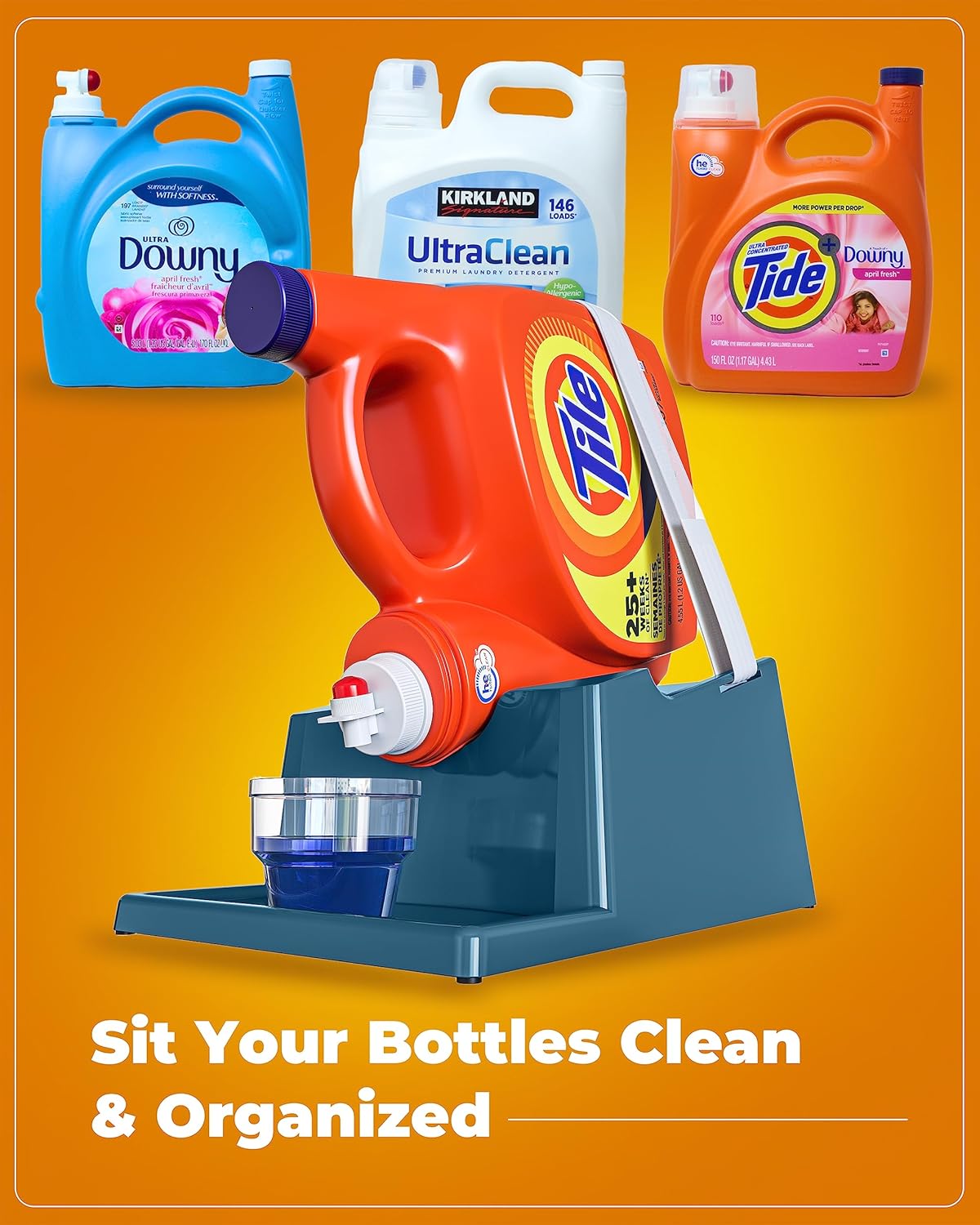 - [Cleaner Counters, No Spills]: Messy puddles and wasted soap are a thing of the past. This laundry detergent organizer features non-slip rubber feet and a molded drip tray that catches every drop, keeping your counters spotless and slip-free.