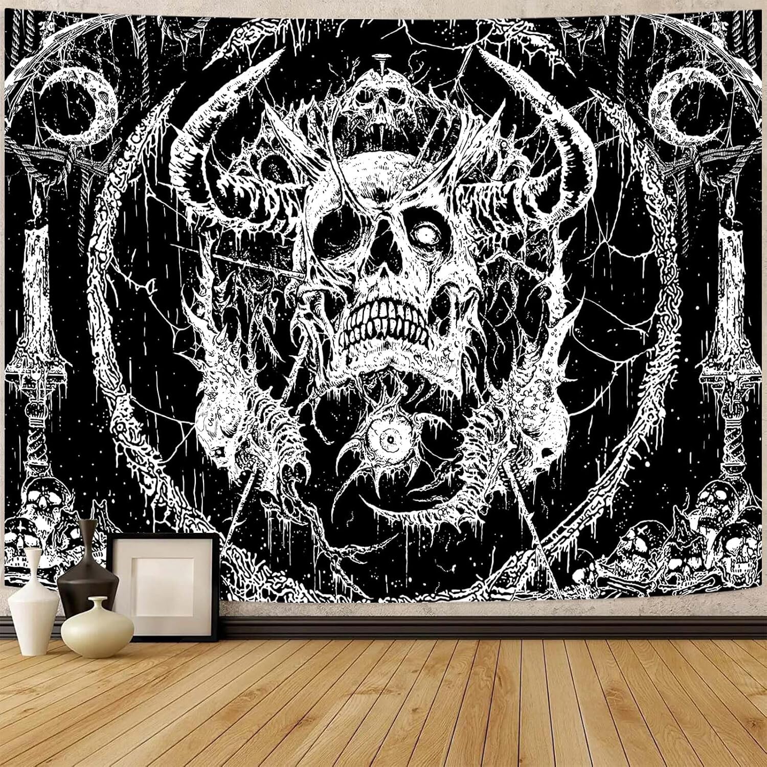 - 【Unique design】: The main body of this black and white tapestry is a terrifying skull, and the Gothic style makes your room even cooler.