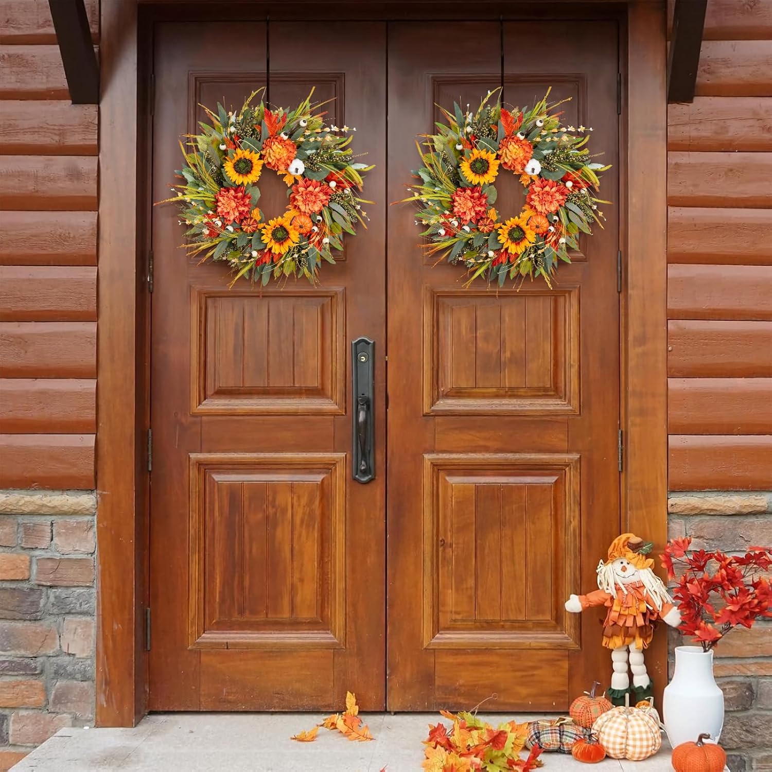 - Perfectly Sized for a Welcoming Impression – 24 Inches of Seasonal Beauty Designed at the ideal size, our fall wreaths for front door 24 inch give your guests an immediate sense of welcome. Whether your door is wood, glass, or painted, this full and textured wreath stands out in just the right way — elegant, bold, and balanced.