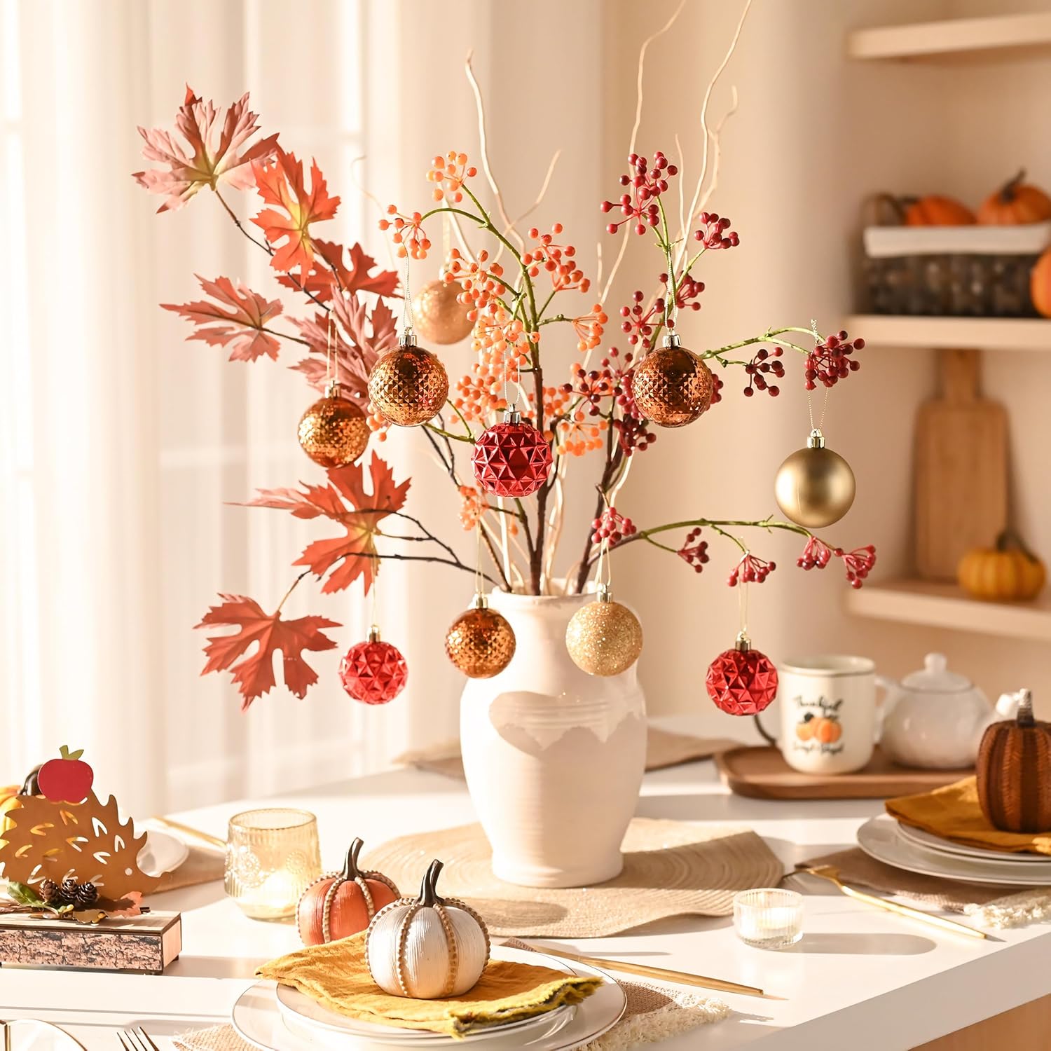 - 【Firm Cap & Ready to Hang】The sturdy plastic caps of autumn decor can support the weight of 335ml of water and come with a pre-tied string, making it easy to hang them on your tree or other desired locations
