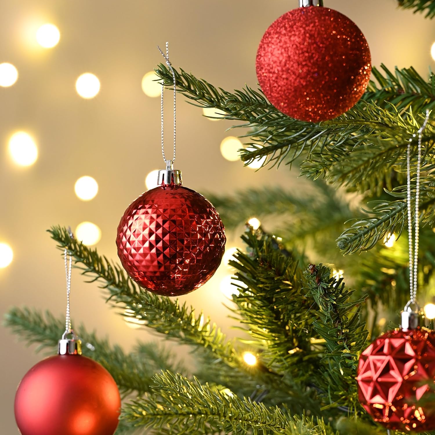 - 【Shatterproof】These Christmas ornament are made of sufficient thickness plastic to prevent breakage. The ornament set remains intact even after falling from 2 meters high onto a hard floor. It is suitable for family